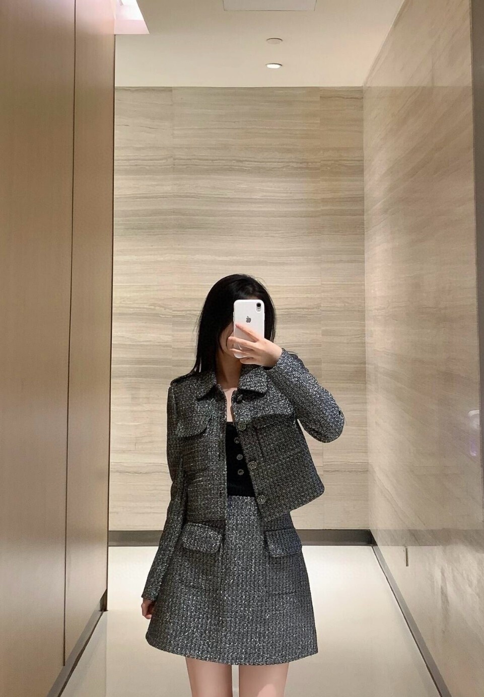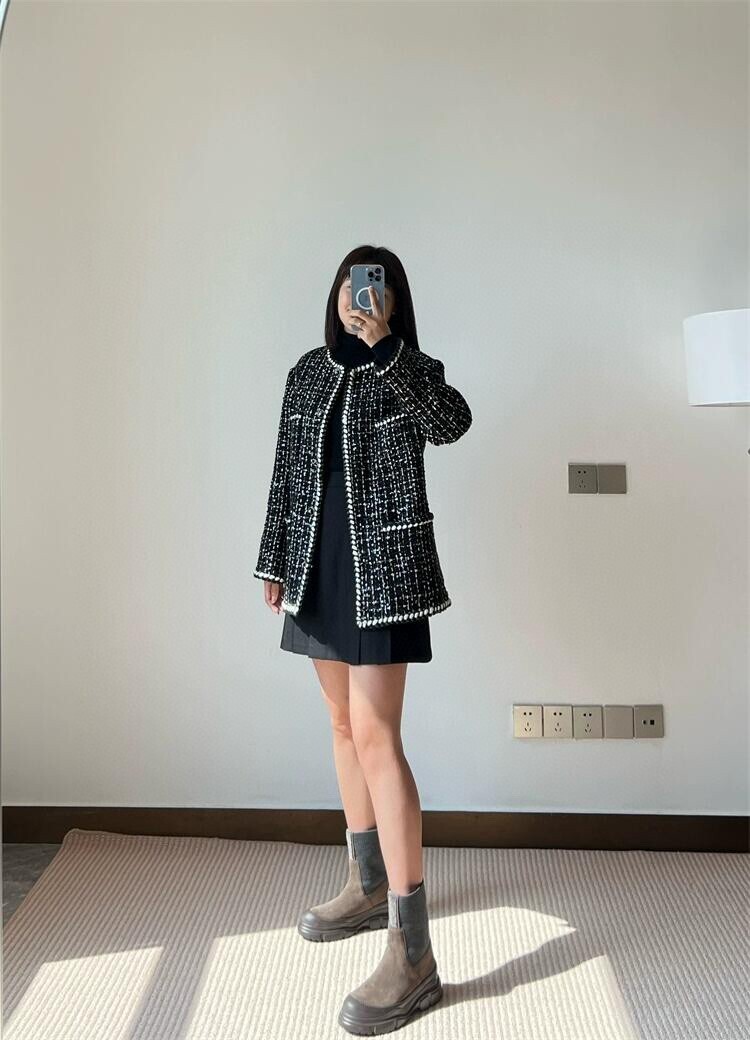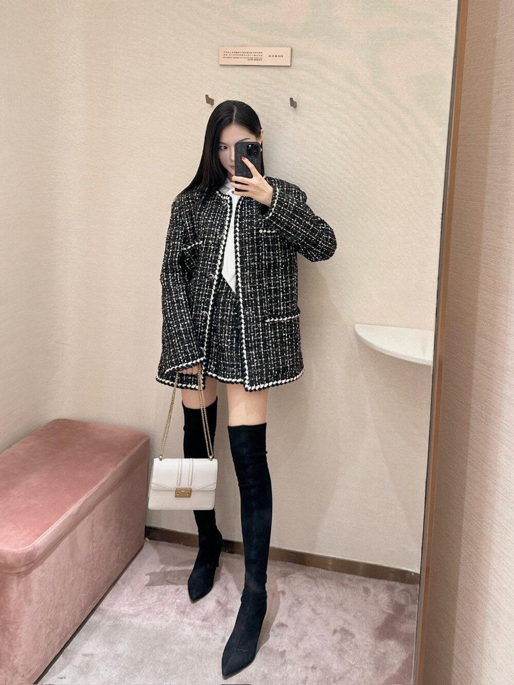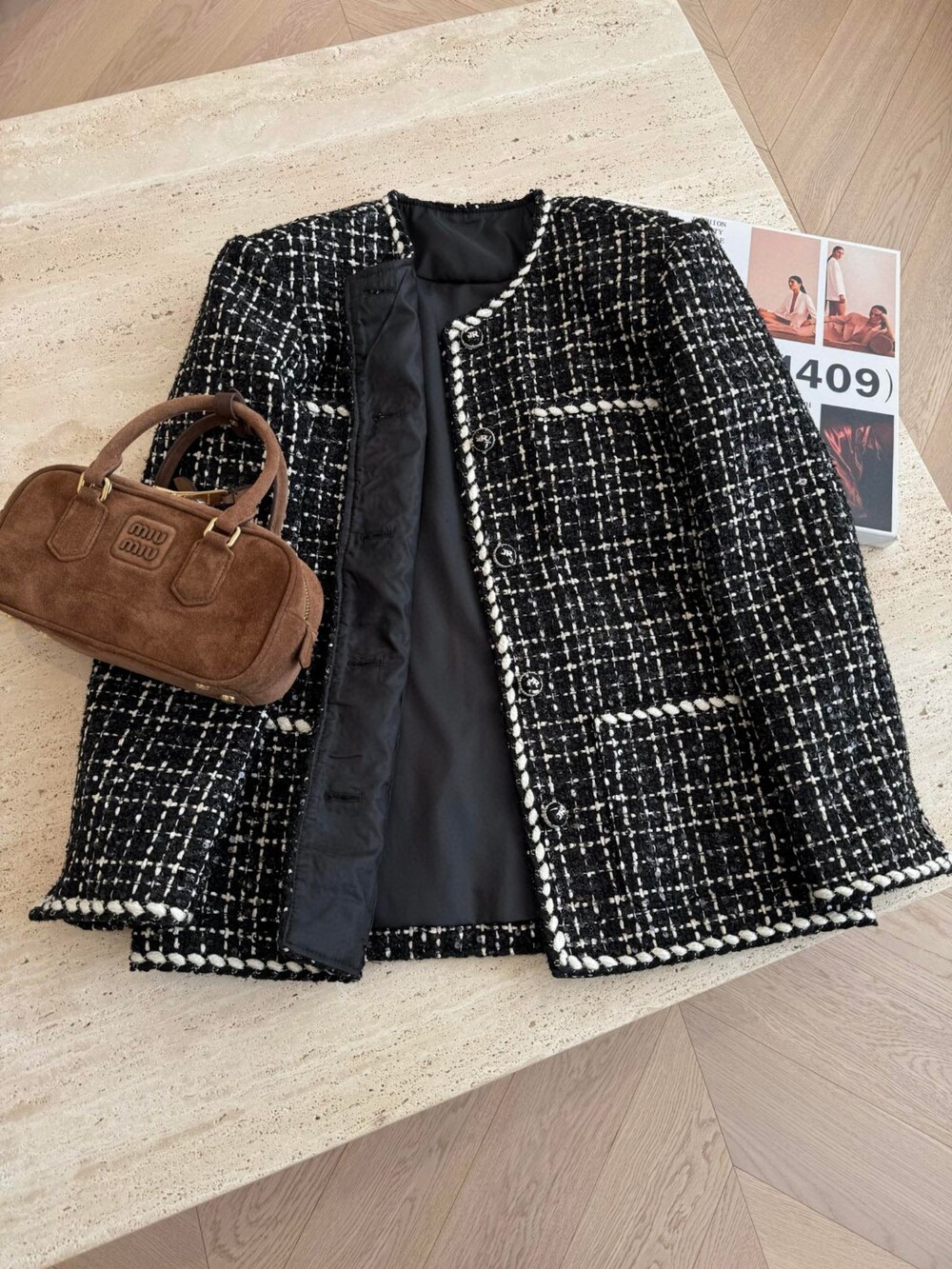 R. CC 체크 트위드 점퍼 블랙앤화이트