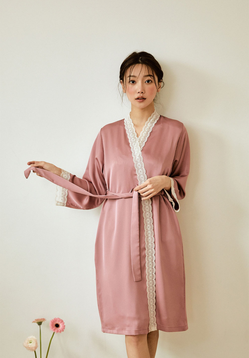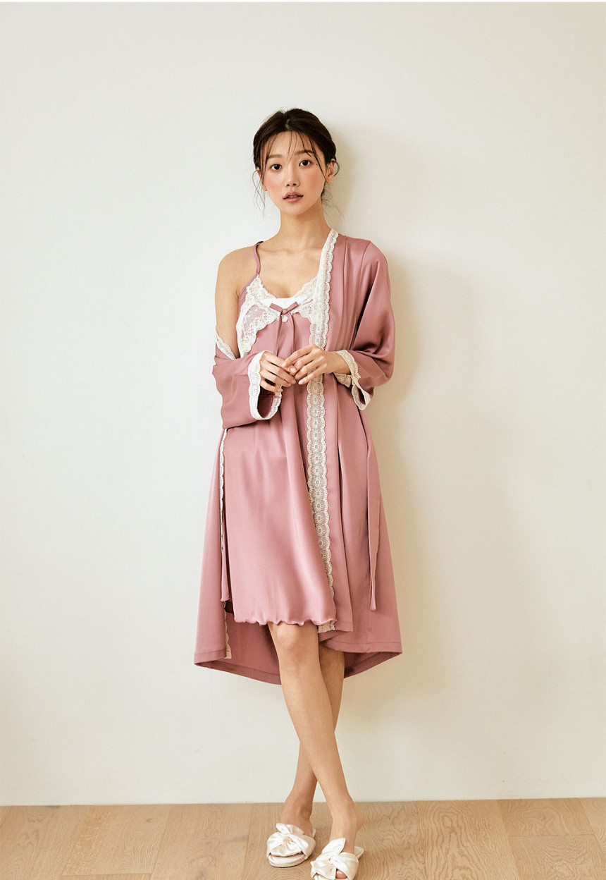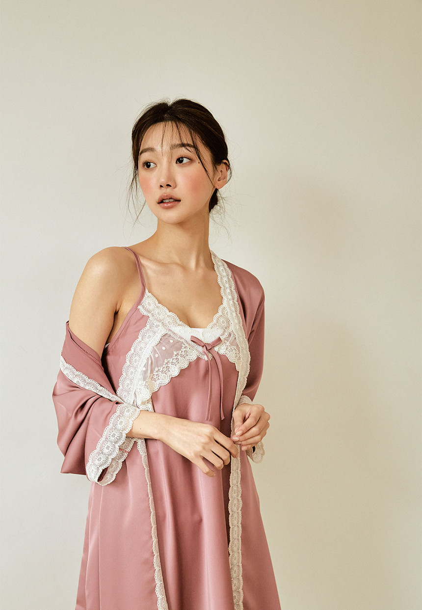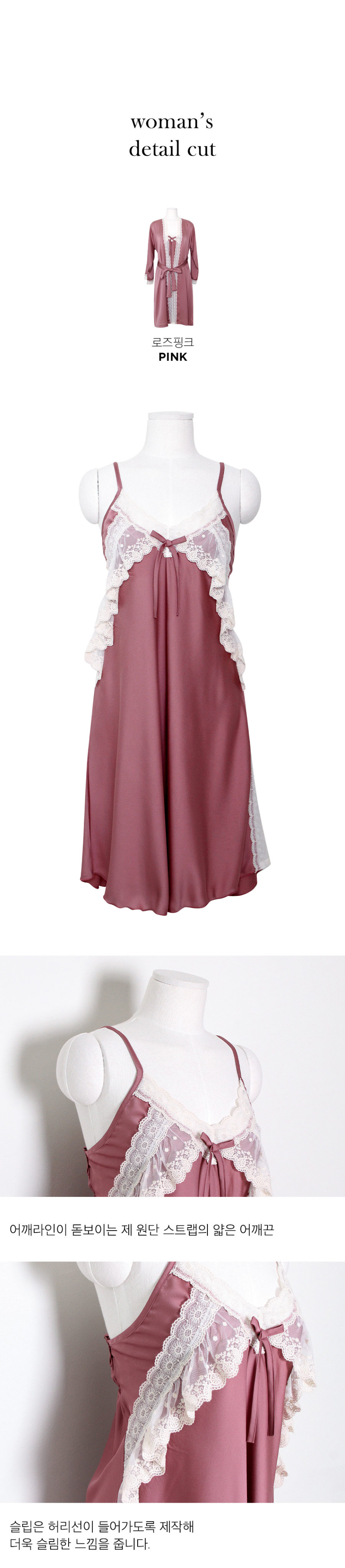 [여성] 아망뜨 샤틴 원피스(끈소매+로브)-로즈핑크