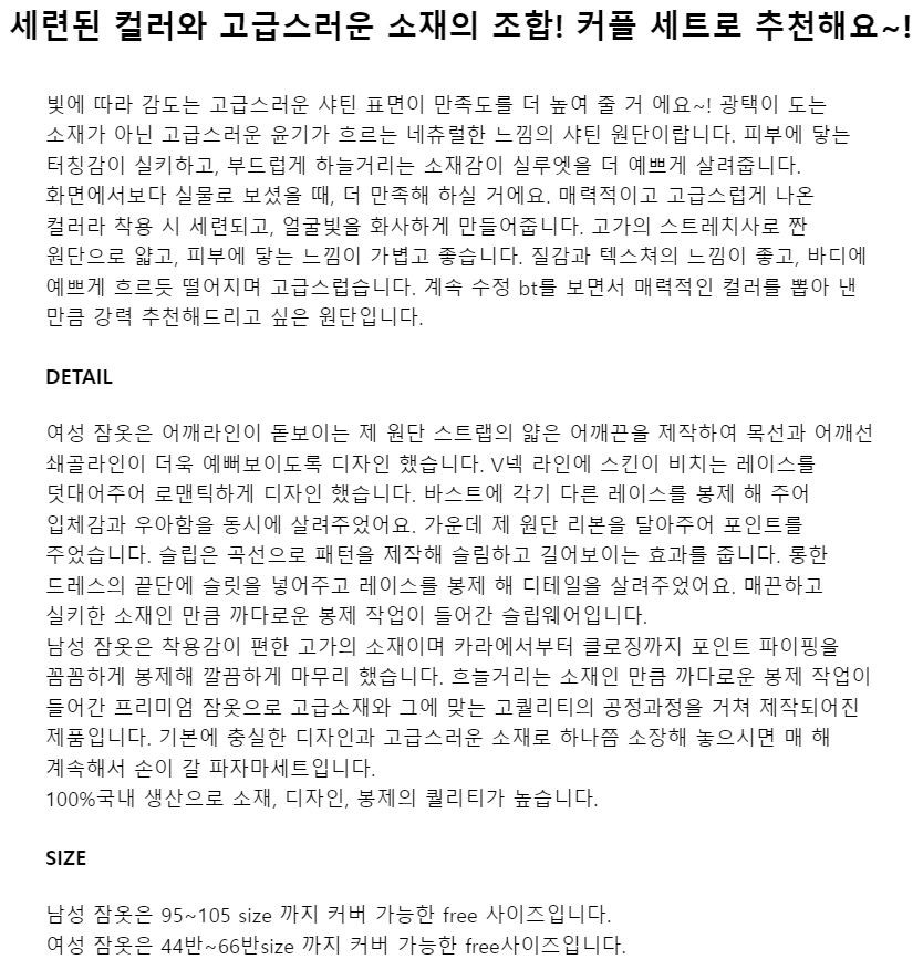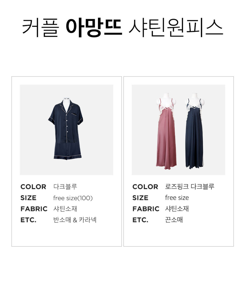 여성 남성 커플 아망뜨 원피스 투피스 긴소매 반소매 끈소매 수면 잠옷