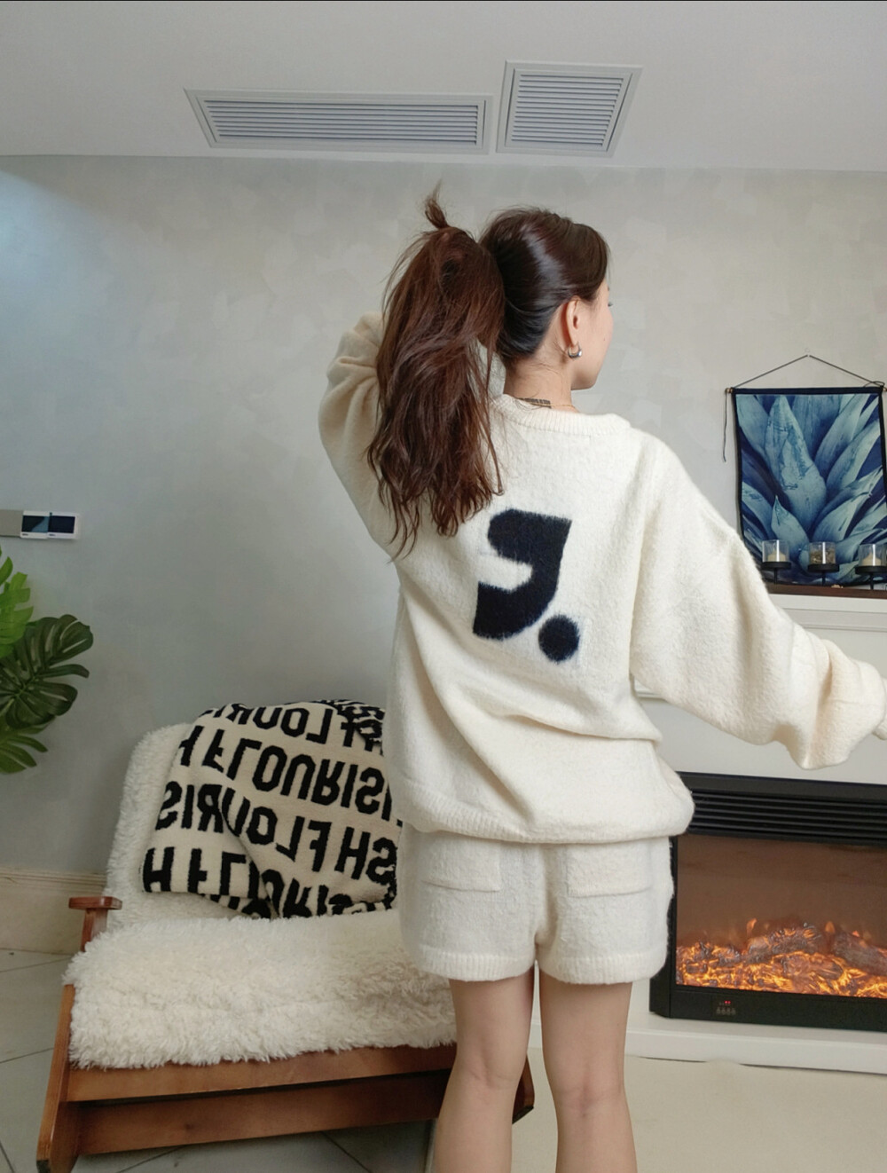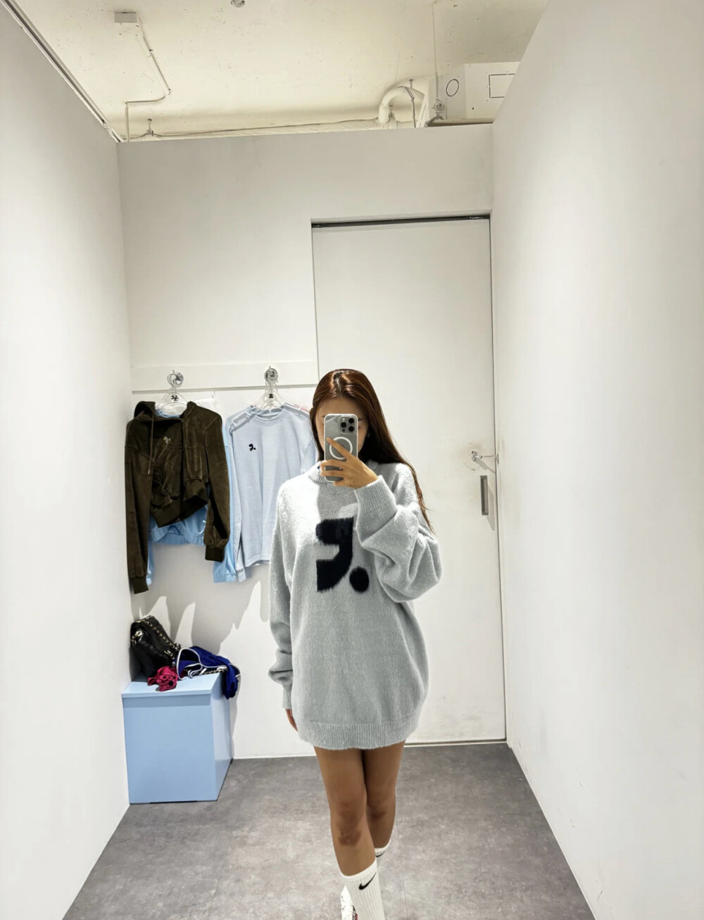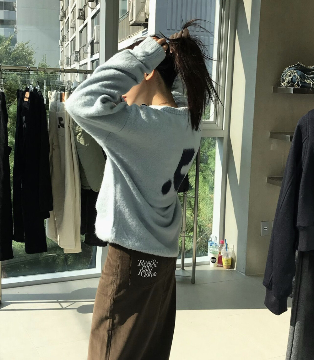 짧은 기장 하의에 롱부츠 매치해도 예쁜 니트에요.