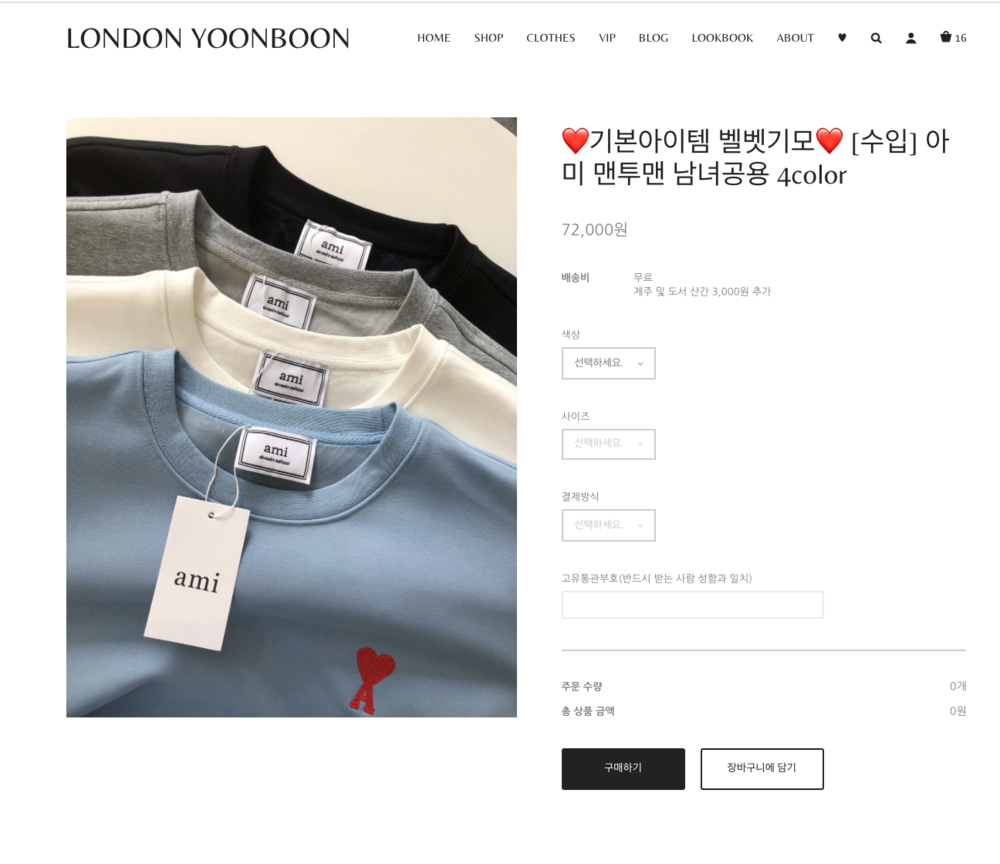 아미 맨투맨도 배송오면 보여드리기로 했었는데