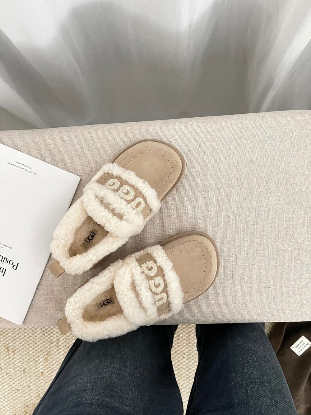 [수입] UGG Letter Logo Shearling Slip-on (Flat Sole)