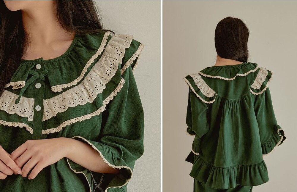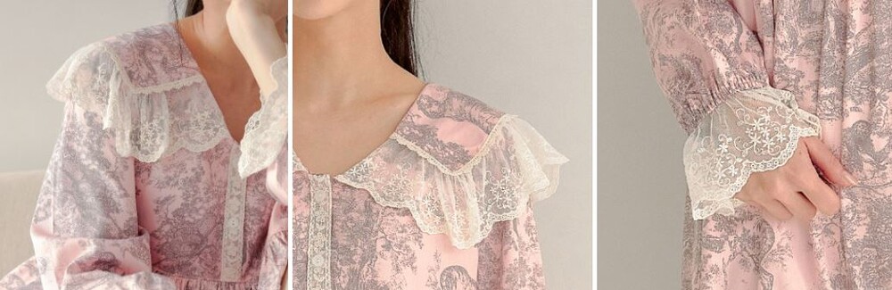 이렇게 차분한 컬러감의 원단과 레이스에요
