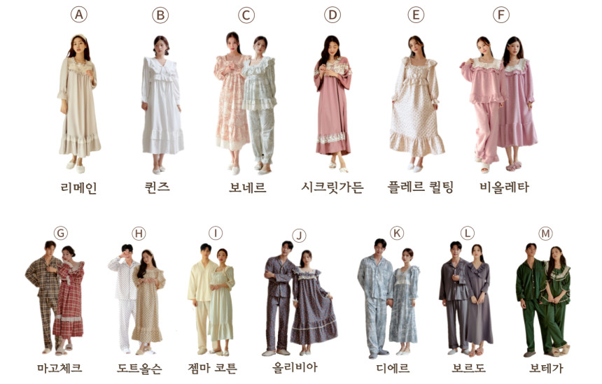 런던윤웨어 잠옷 원피스 홈웨어 투피스 커플잠옷 여성 남성 수면 파자마