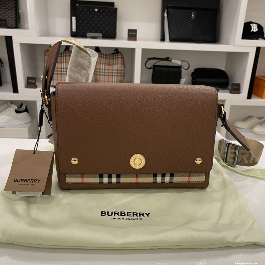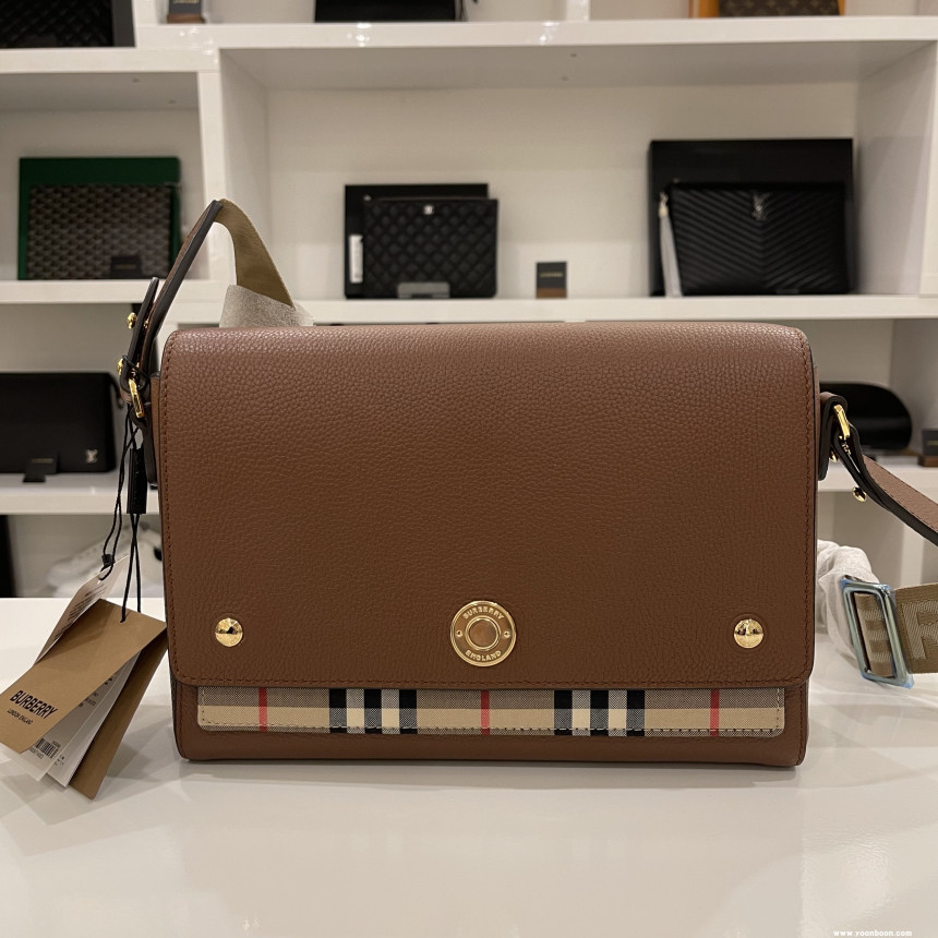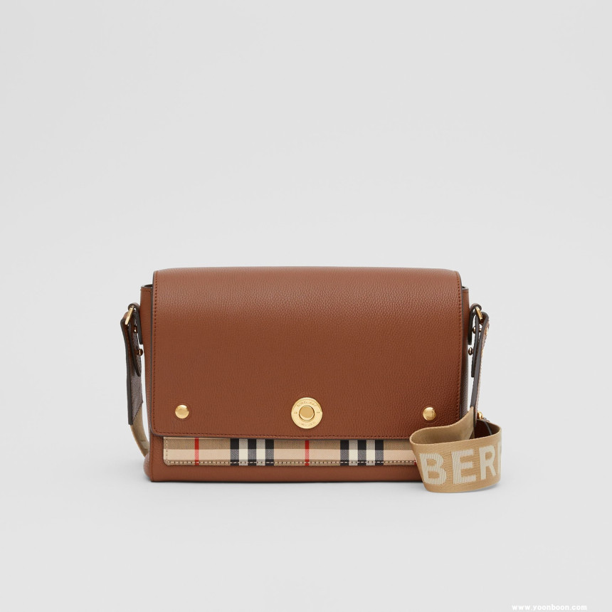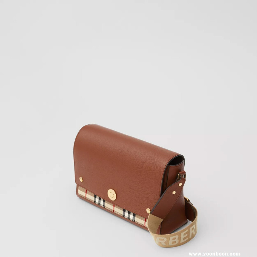 버버리 Leather and Vintage Check Note Crossbody Bag [Tan]80211111