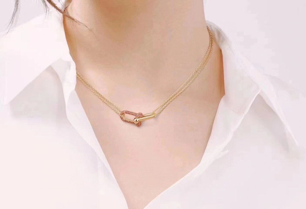 강렬한 구조미에서 영감을 받은 HardWear 더블 체인 파베 링크 네크리스는