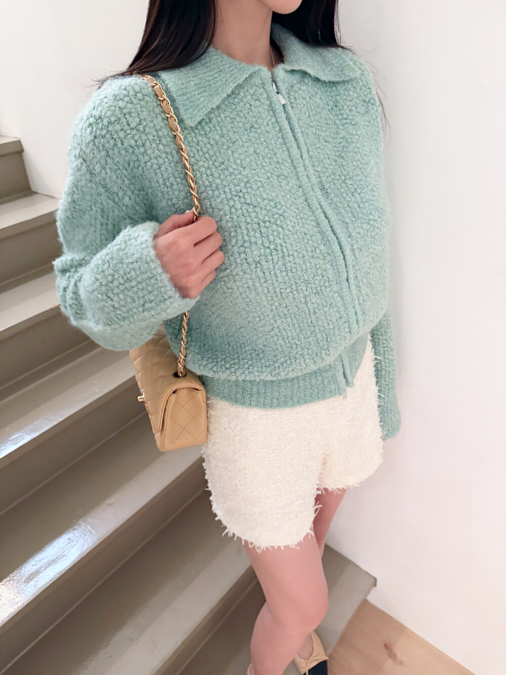 산뜻한 컬러감과 포근한 텍스처가 매력적인 부클 집업입니