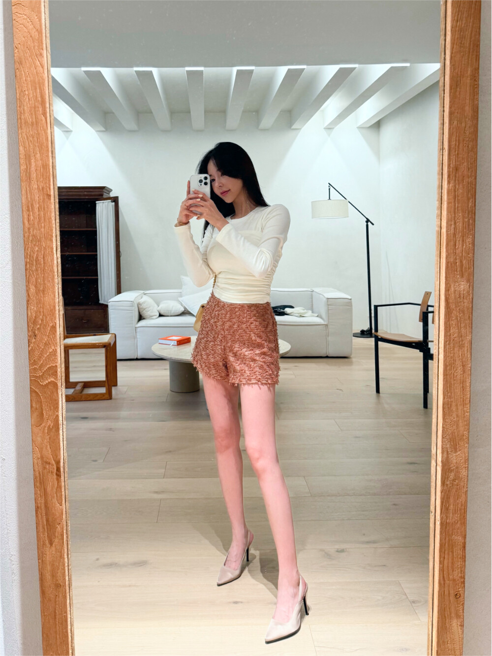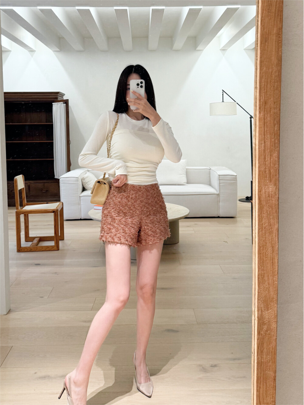 세련된 포인트를 더해주는 트위드 쇼츠입니다.