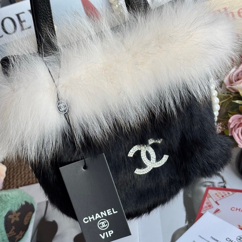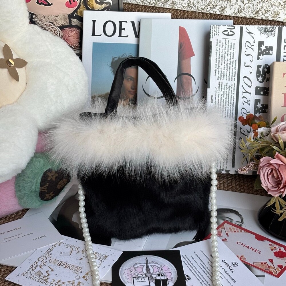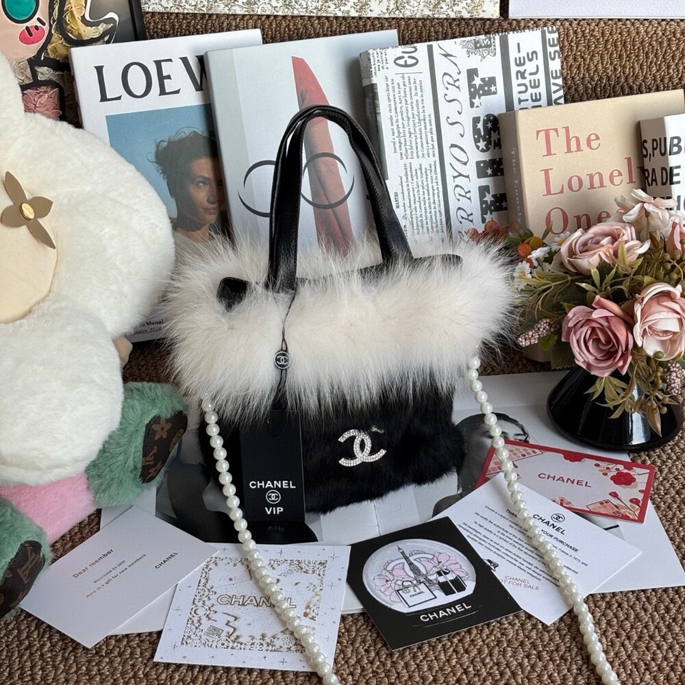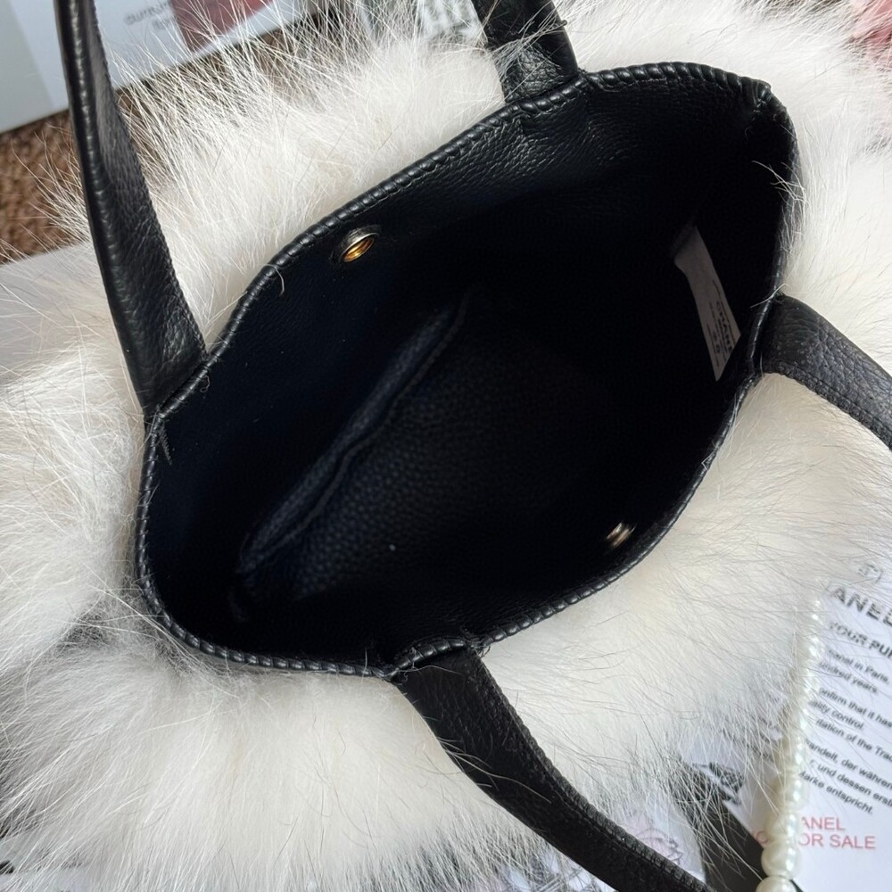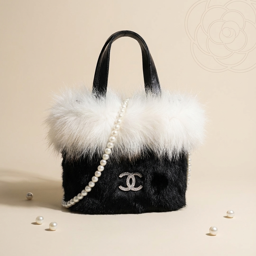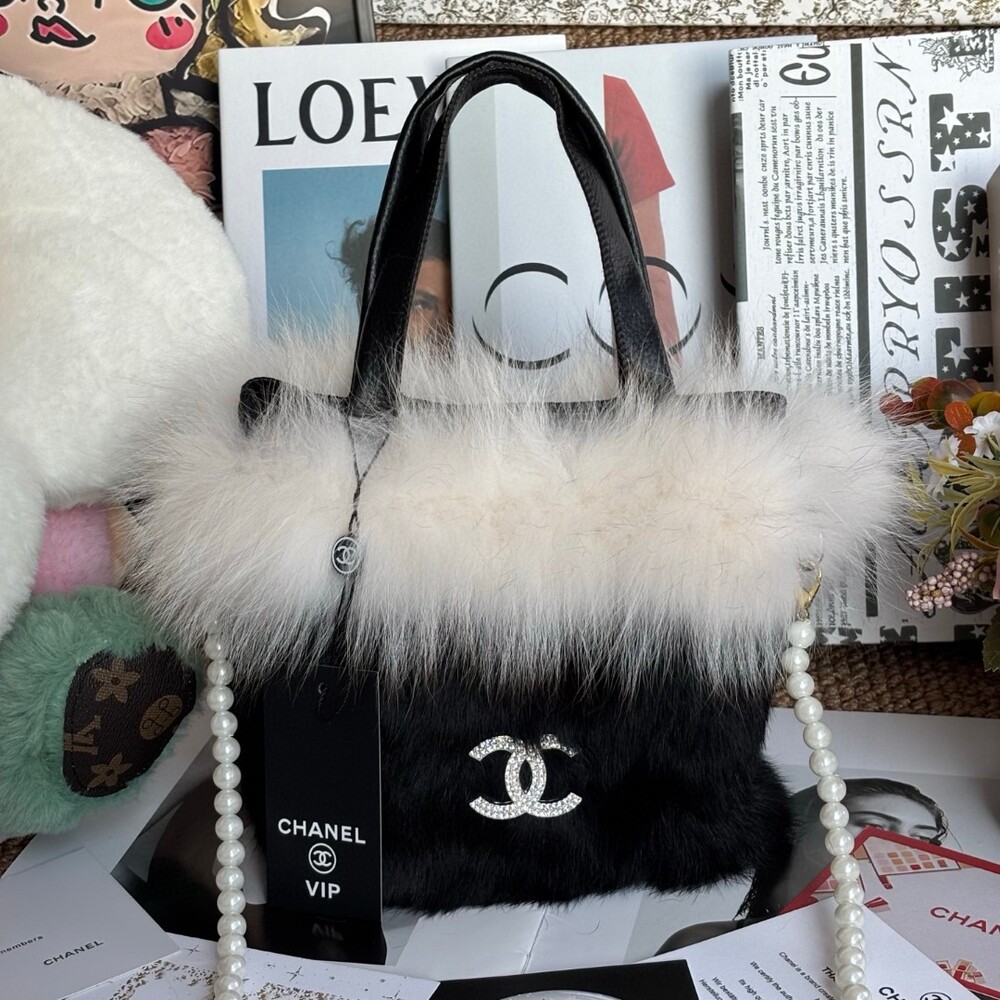 The Chanel Fluffy Pearl Chain Tote Bag brings together cozy charm and elegant sophistication.