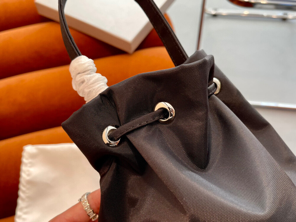 It can actually fit.Everyday wallet, lipstick, balm, paper towels, headphones are put in there and there is space inside. There are also inner pockets for holding cards. It can be carried by hand or has a thin shoulder strap for cross-body. It looks good on the back. The more I look at it, the more I like the essential mini bucket. Size 23 15