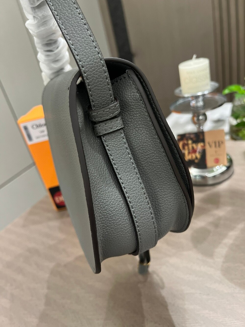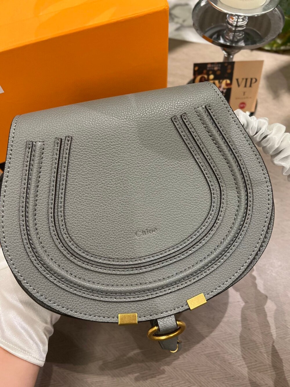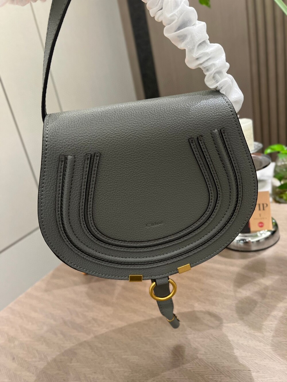 Chloe's saddle bag It smells like hippie in the old days.Rivets are arranged on the front edge, fixed firmly, And some of the old metallic colors are more retro. The bag's connection ring buckle is also a characteristic of the bag's shape, the horse's hoof-shaped ring buckle with retro metal coloring, and the back is very noticeable after the feeling Cowhide