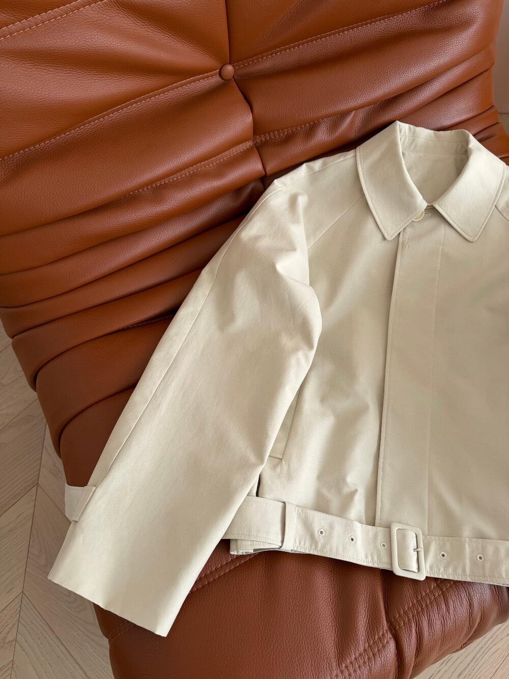가볍게 걸치기 좋은 크롭 기장의 트렌치 스타일 자켓입니다.