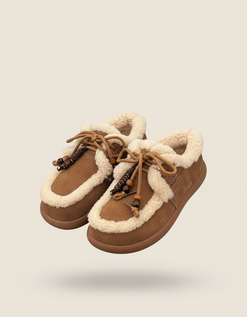 빈티지한 브라운 컬러와 포근한 양털 디테일로