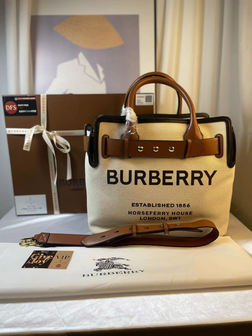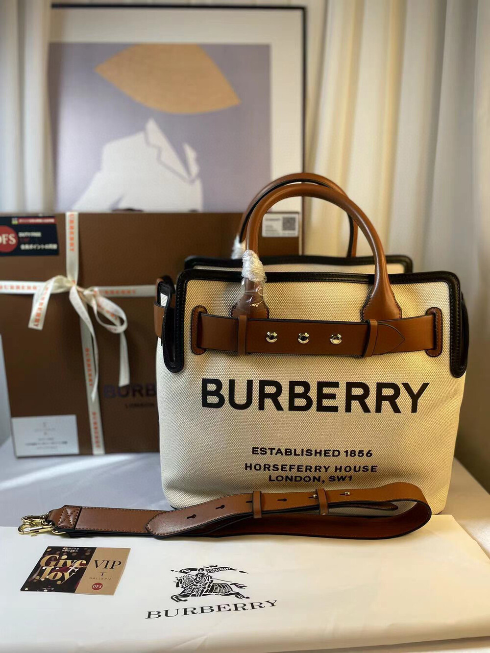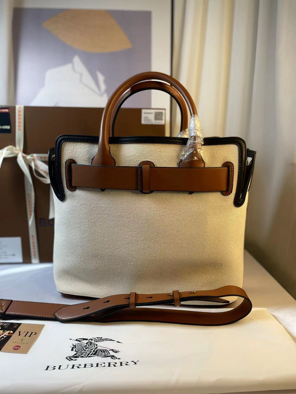 Burberry belt canvas shopping bag This is really beautiful Looks good no matter