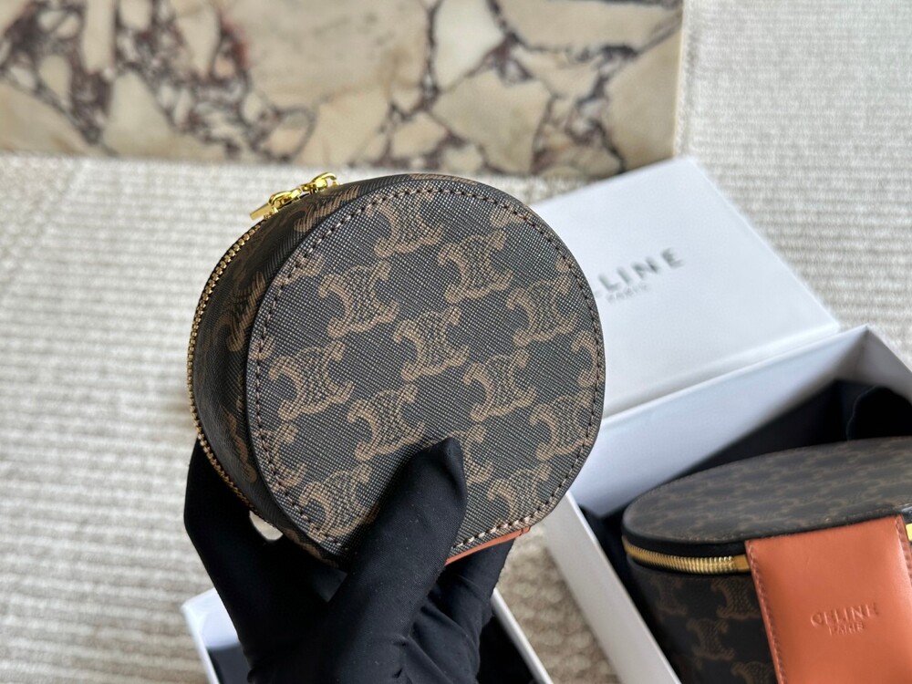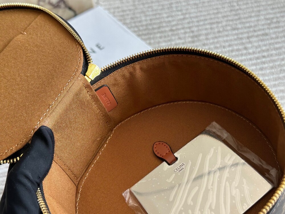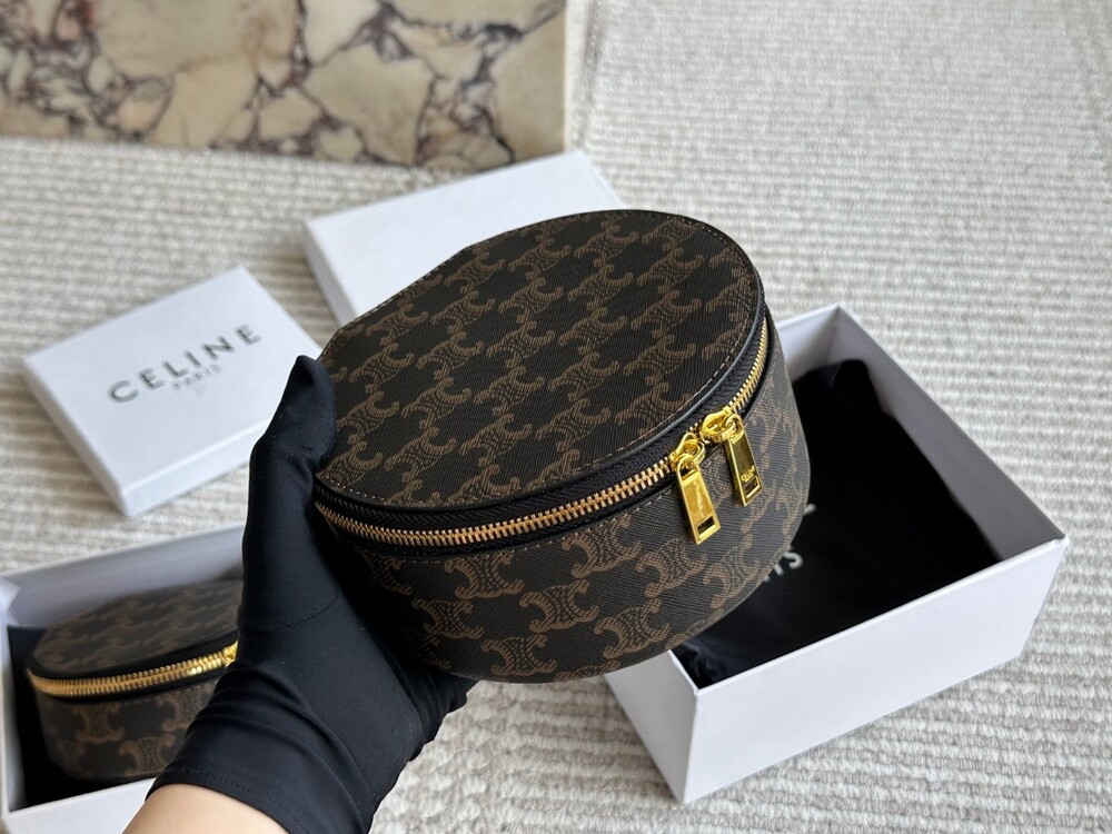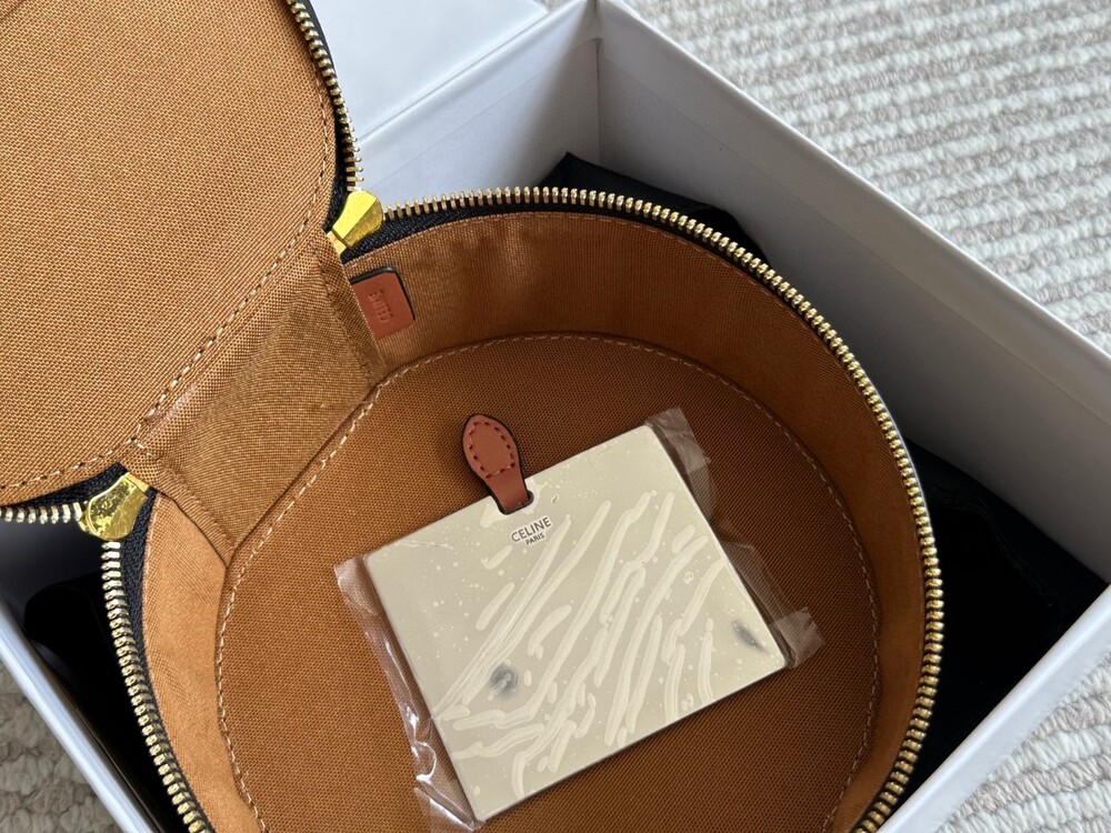The Celine Round Bag in Triomphe canvas is a chic and distinctive