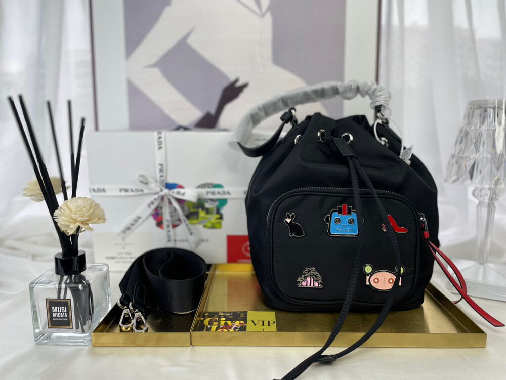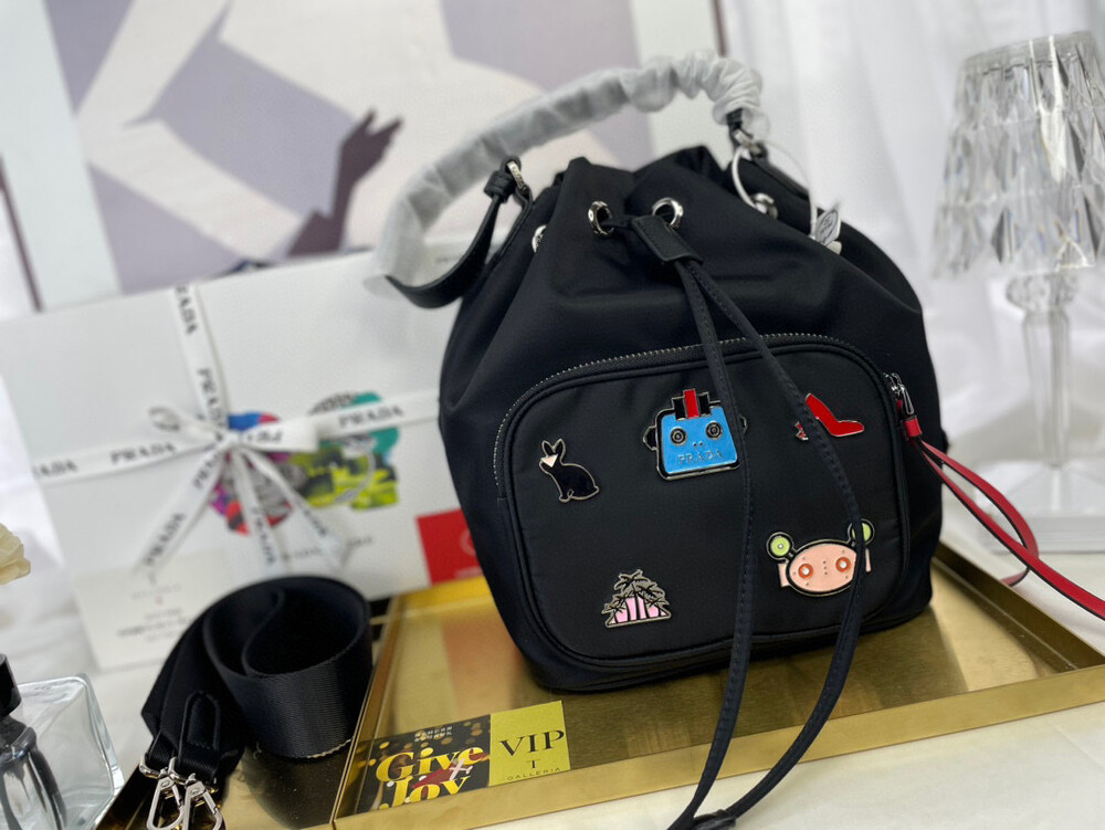 Membership Gift / Special Price _ Gift Pack Prada Nylon Fabric Robot Badge Bucket Bag #2022 New Prada Camera Bag This year's Super Loved Style Bag Imported Nylon Fabric Lightweight and Simple Design Not only Can Be Loaded but Easy to Tap : Size 20*26 cm