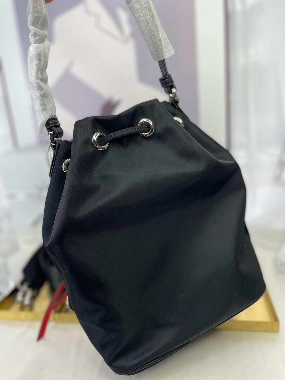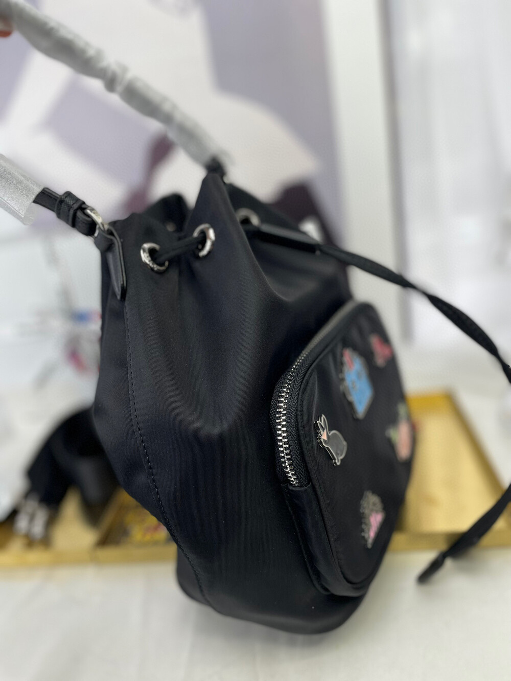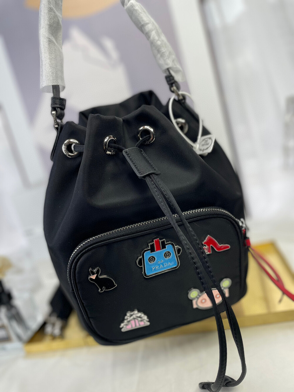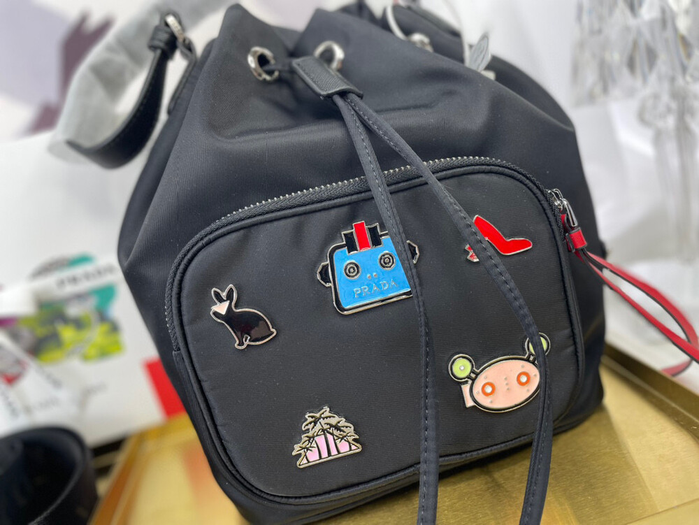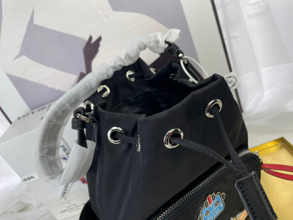 프라다 뱃지 버킷백 블랙