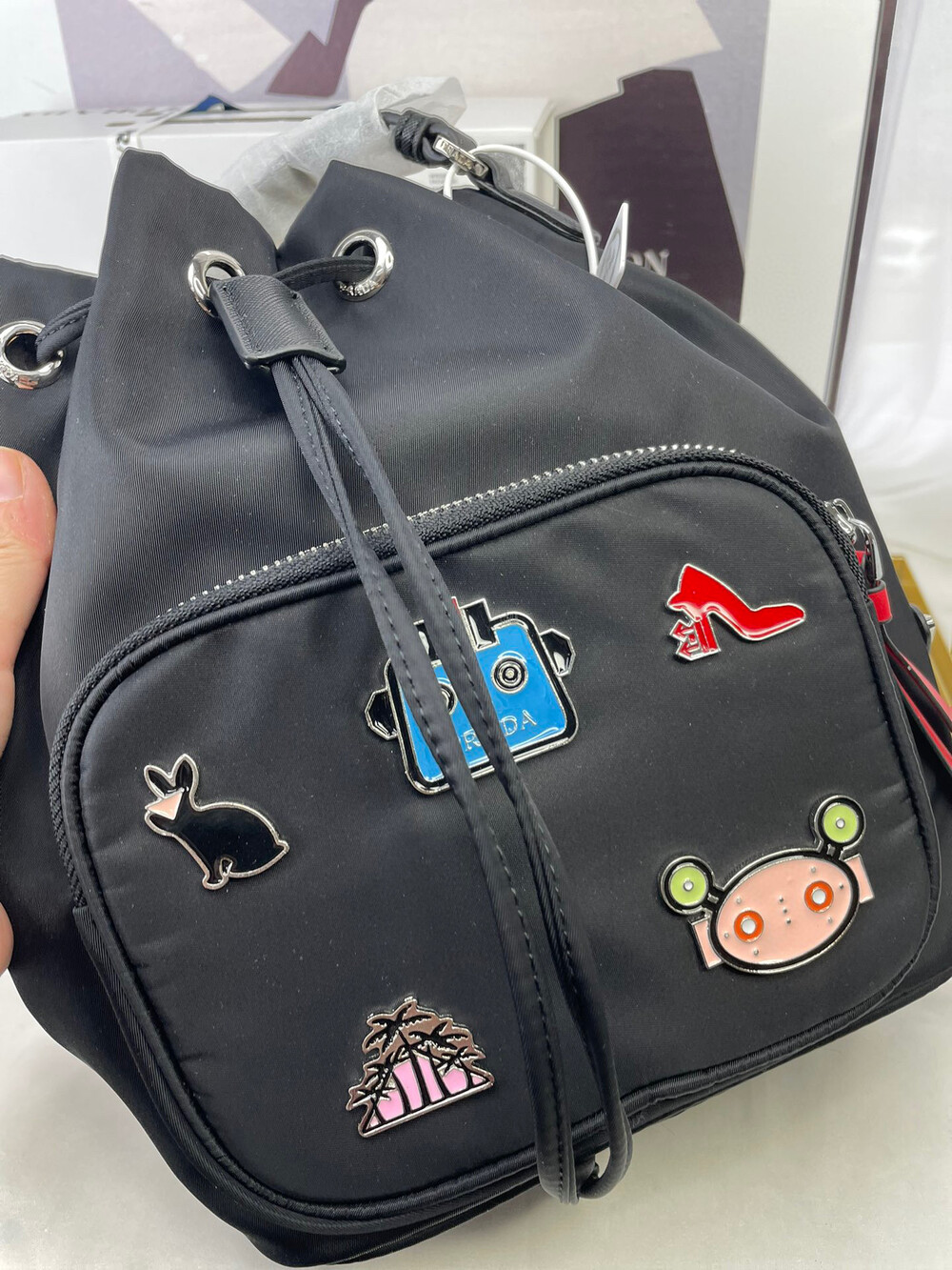 거기에 프라다 뱃지가 추가되어 너무 귀여운 가방이에요 ◡̈