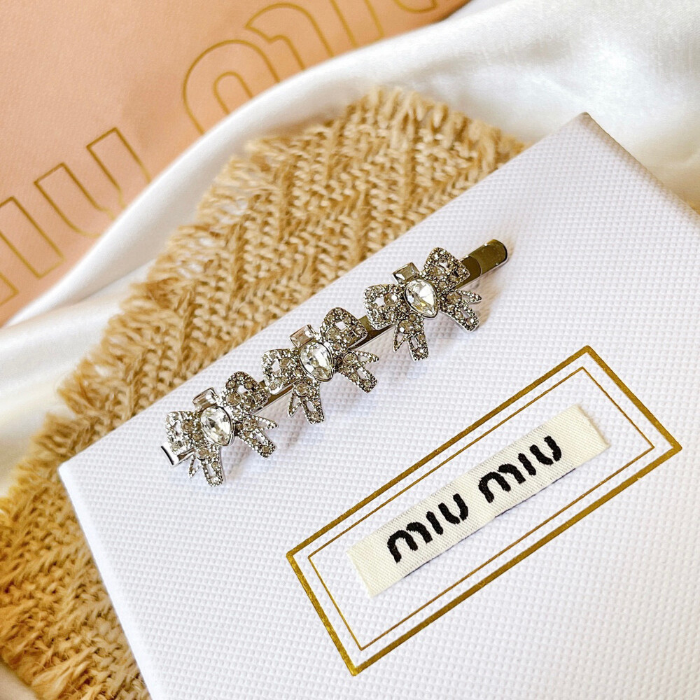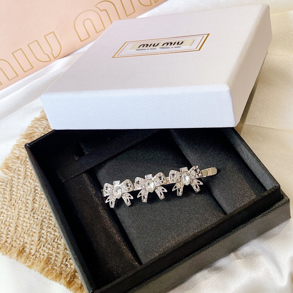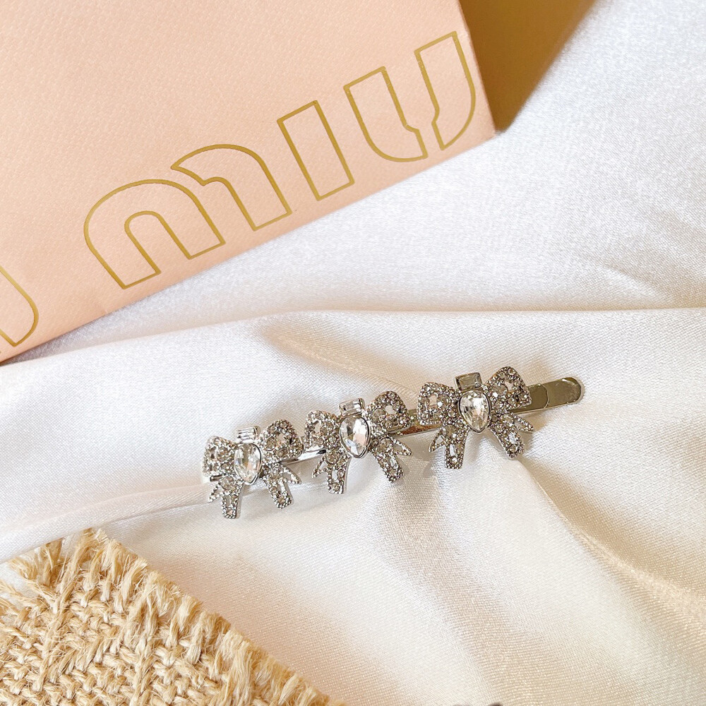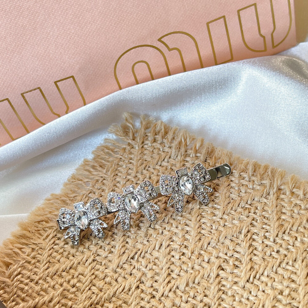 [New Product] MIUMIU Premium Privilege / Miumiu three bows Rhinestone hair clip Selected counters consistent material Letter Logo Seiko create simple and luxurious style Light luxury and beautiful hair clip