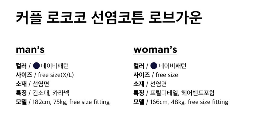 [전참시 김소현 가운] 여성 남성 커플 로코코 로브가운 수면 잠옷