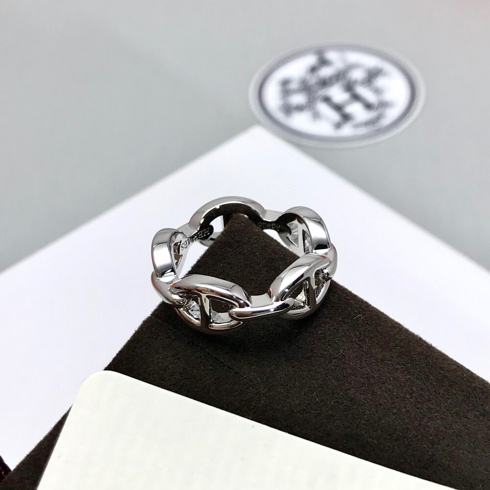 Hermes, the pig's nose ring, the hottest net ring/ Out of Stock, it's hard to Buy.Very simple and atmospheric metal ring with its own high-grade effect!The shape of metal is very elaborate, no matter the hardware polishing detail, the thickness is properly kneaded!Instead of a very thin layer of hardware on the market, we are consistent with Z thickness, the craftsmanship is exquisite, smooth and delicate.Hand texture super. inner ring has product origin, anti-counterfeiting mark, letter mark Logo!Come on, let's get in. One person, one classic that never goes out of style Thickness 1.2mm~2mm