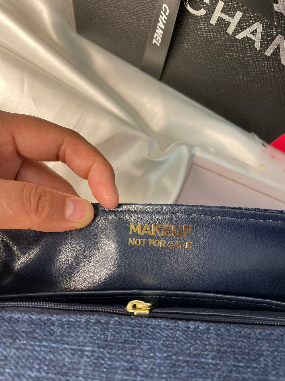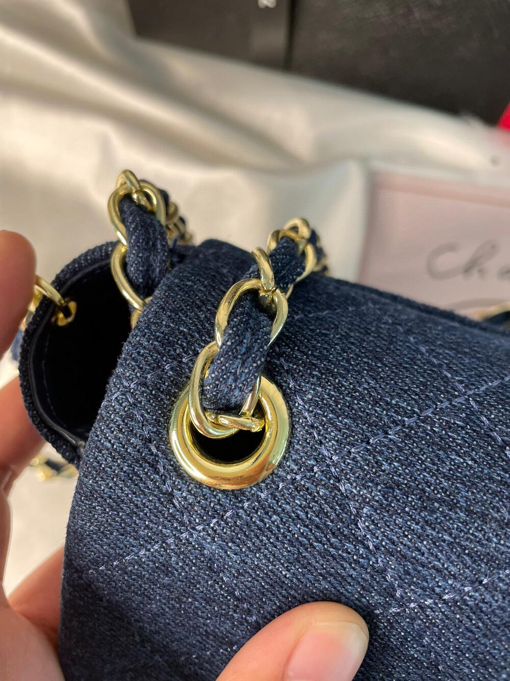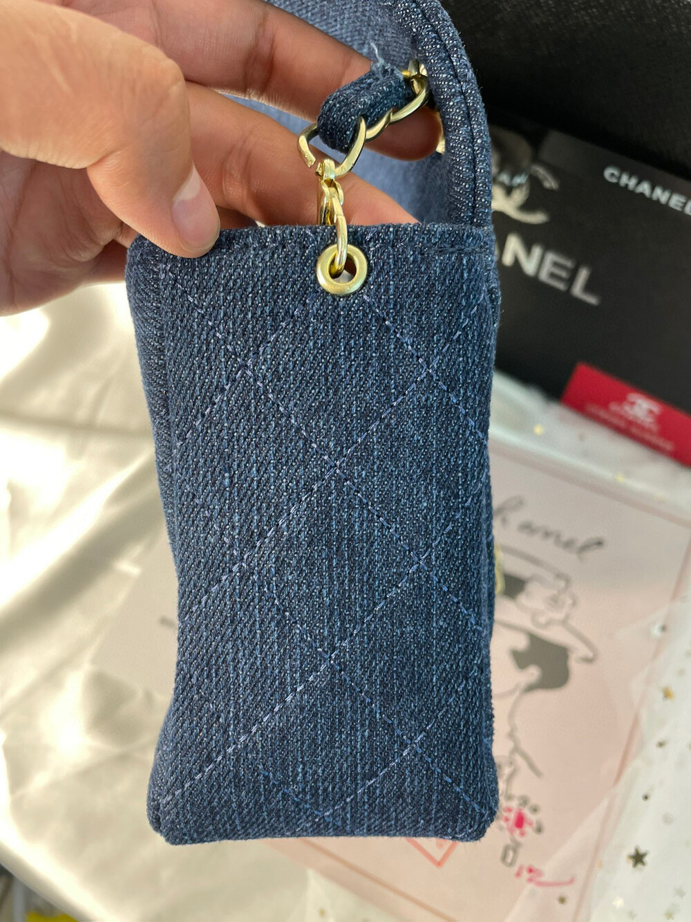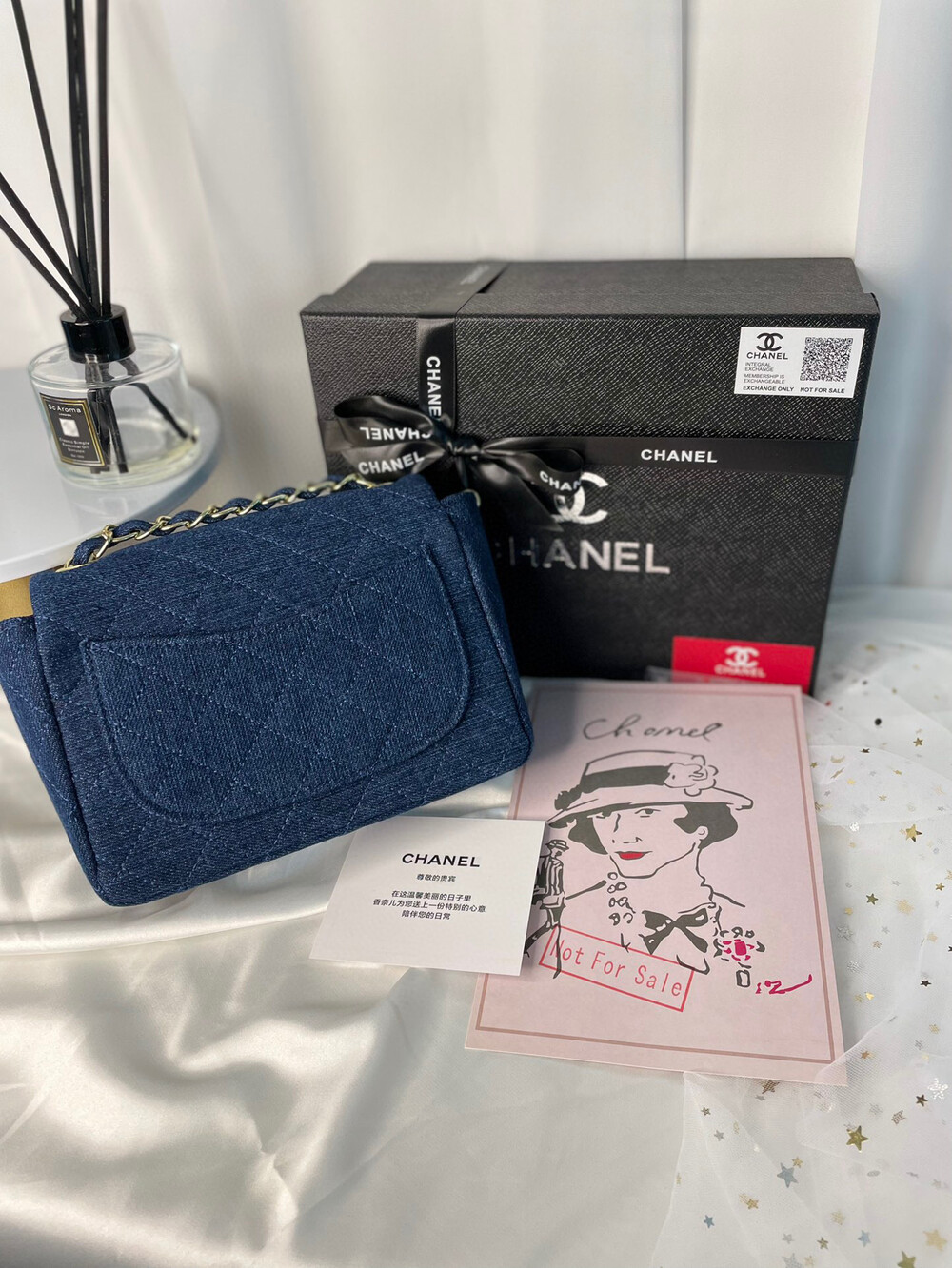 points redeem denim chain bag starting in 2019Both Taiwan and Japan make-up counters had redemption channels, and the origins have been OEMs in secret domestic factories since 2019.Remodeled in Chanel's classic bag, used denim fabric, the only item at the makeup counter, not available for sale at the counter