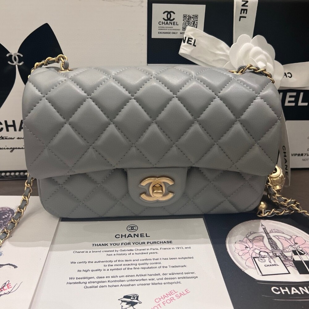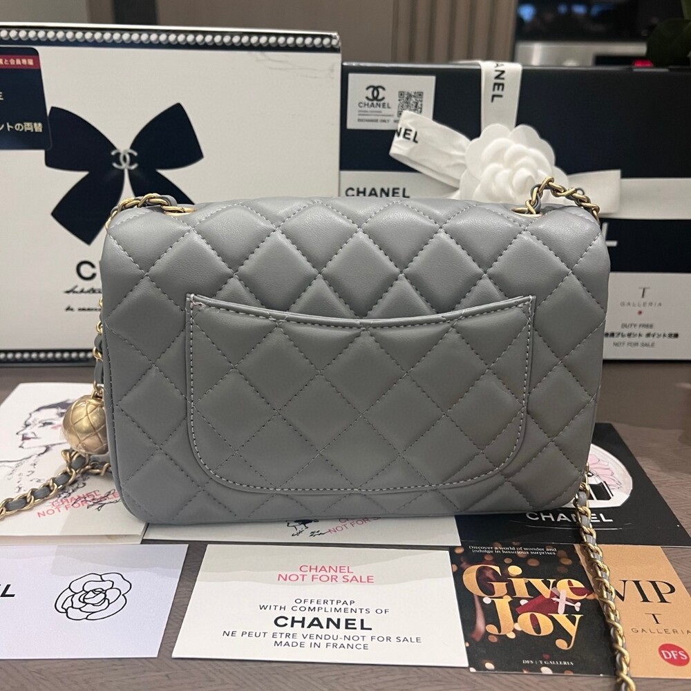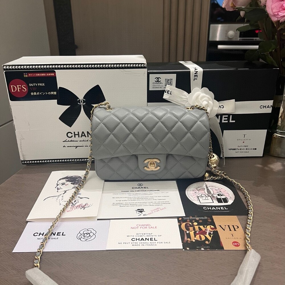 One of Chanel’s most coveted designs — this Square Flap Bag with gold ball chain detail radiates elegance and sophistication.The standout gold metal ball accent brings an elevated charm, making it a must-have for fashion-forward individuals.Featuring an adjustable chain strap, the bag can be worn both as a shoulder bag or crossbody, perfect for versatile styling.Its compact yet impactful silhouette makes it suitable for both formal occasions and everyday chic outfits.A true statement piece for those who appreciate timeless luxury.