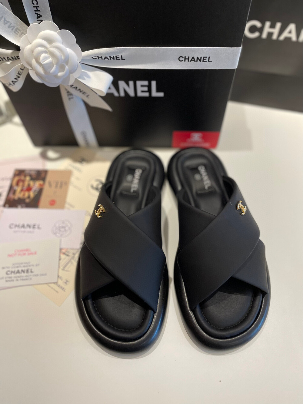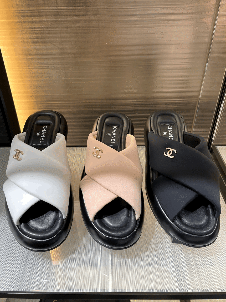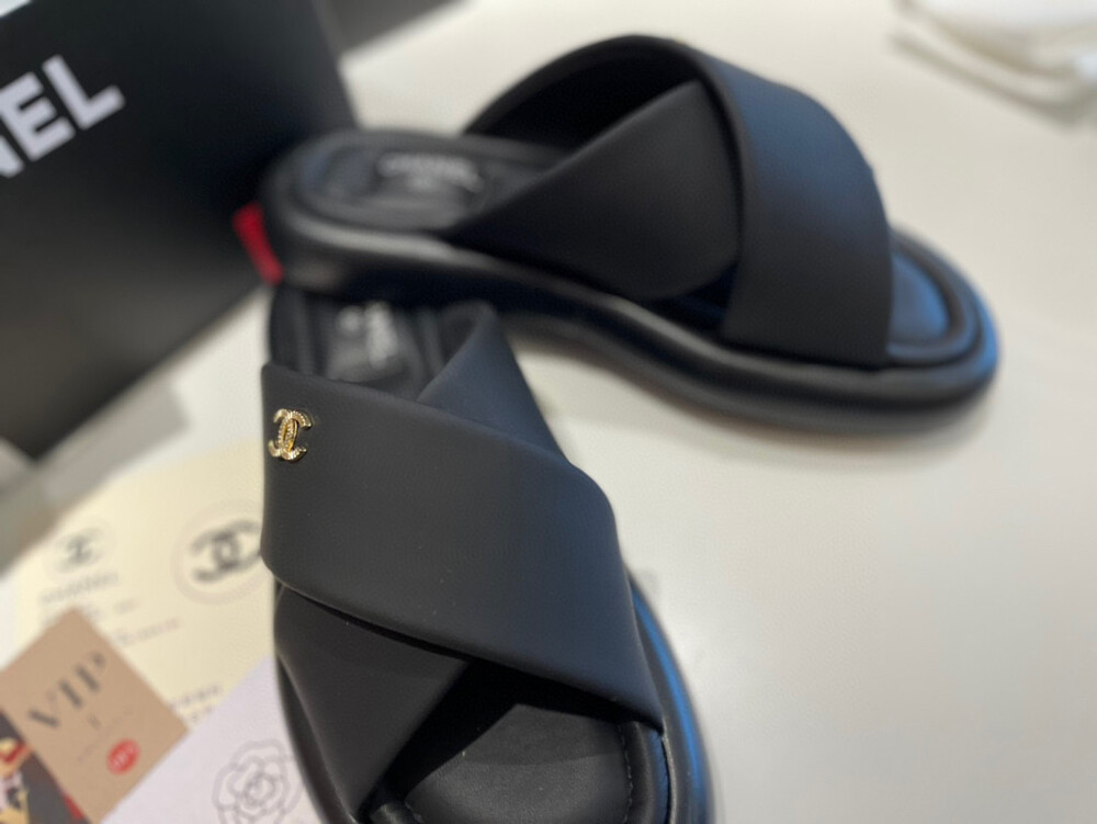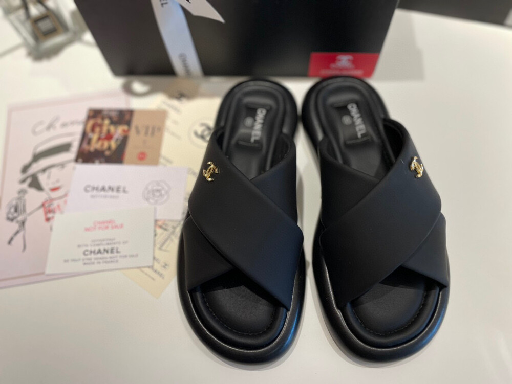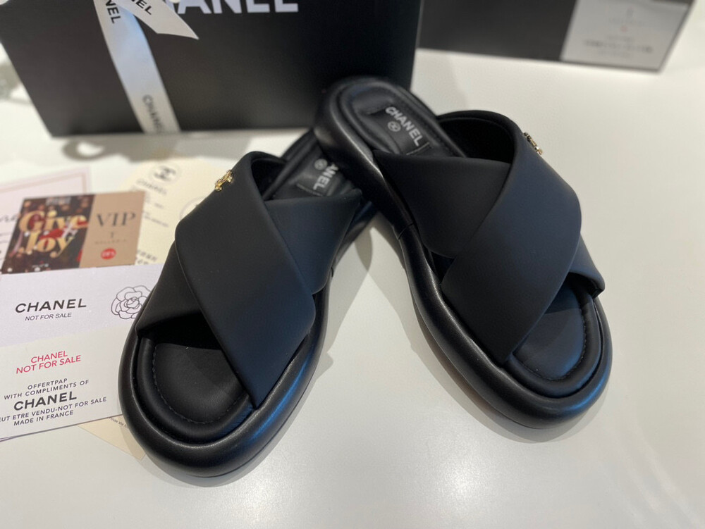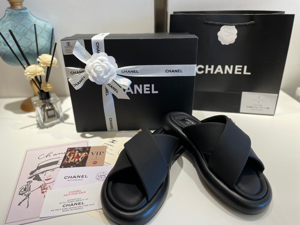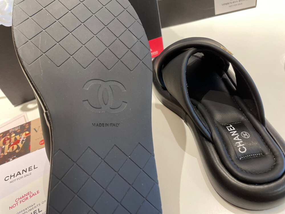 Chanel VIP Gift Slipper Special 35-40 yards Chanel Cross Platform Slippers. This cross-platform mule has a very comfortable fit as it gently wraps the top of the foot with cushion material. I recommend the standard size. The standard size is prettier because it is more elastic than leather. It's a model that I recommend daily because it doesn't come out with this kind of material