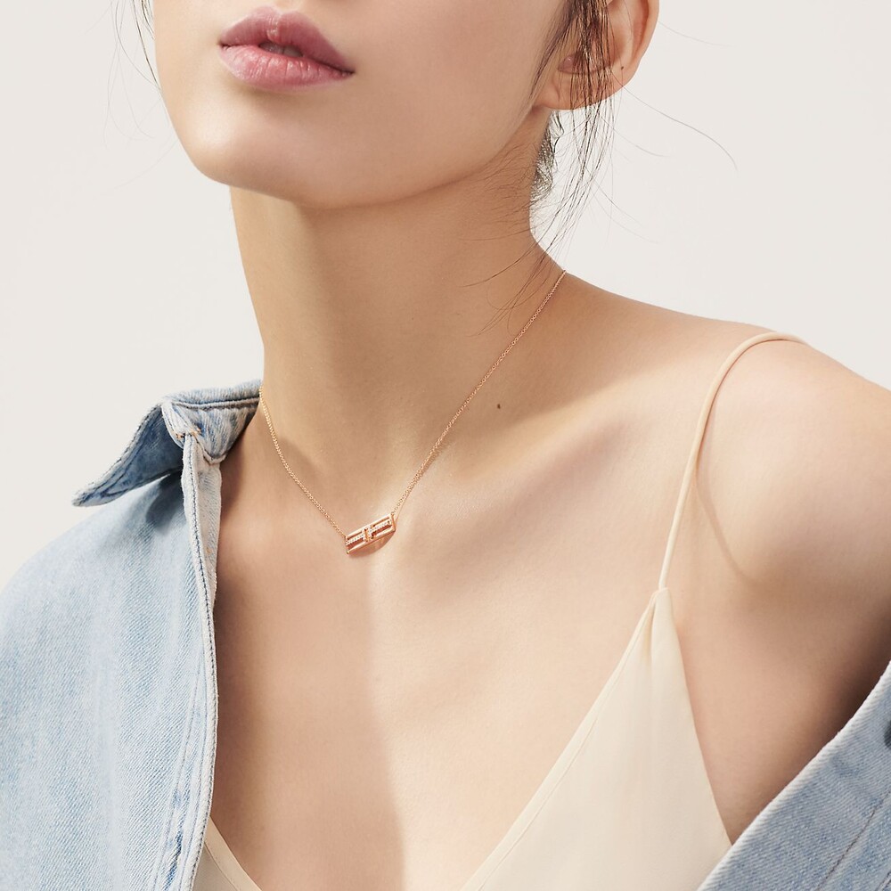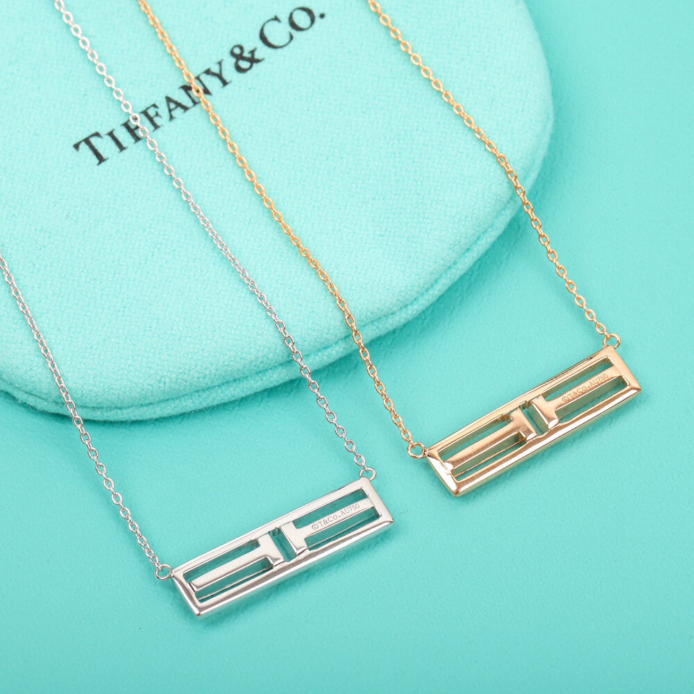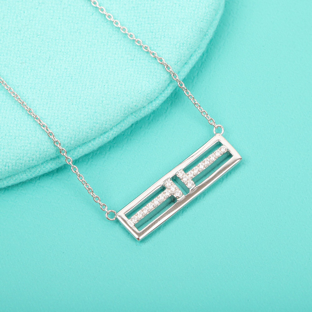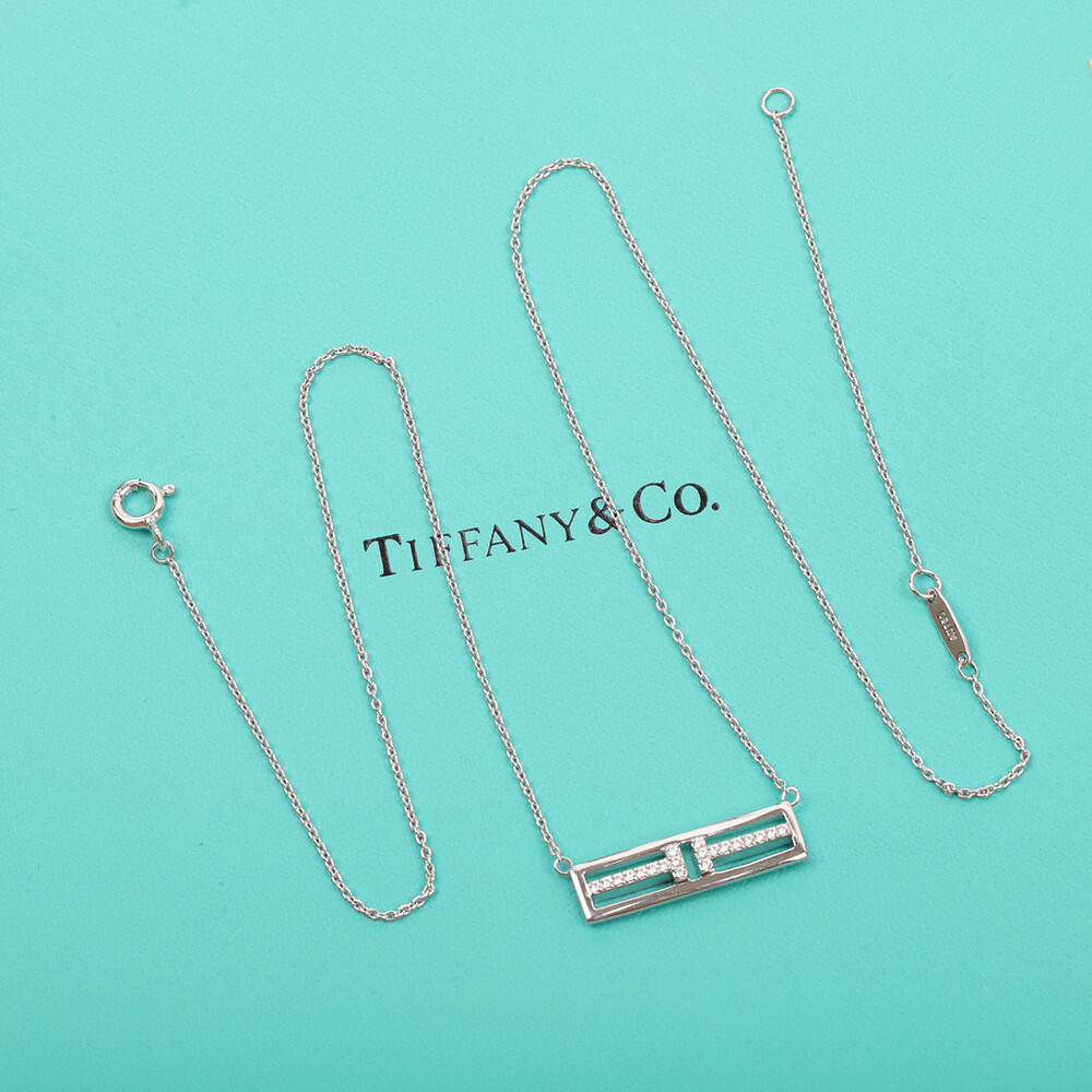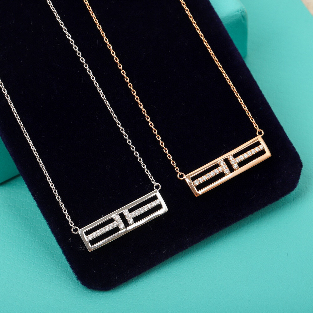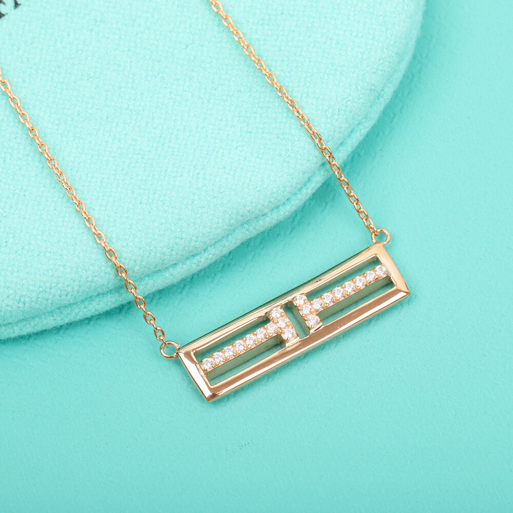 Tiffany T series horizontal pendant, the T part is hand-set with diamonds, which makes the necklace look fuller as a whole and has a better stacking effect. 2colors