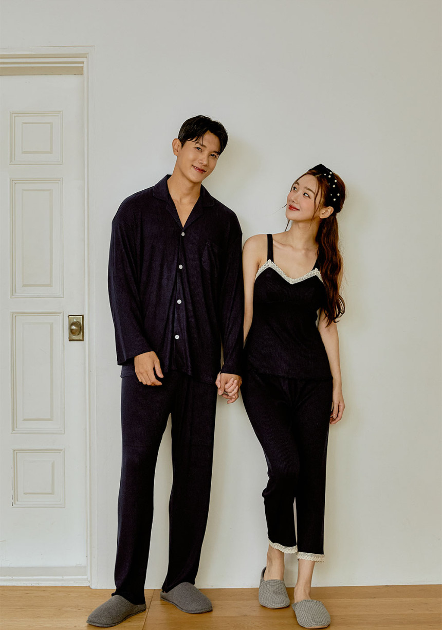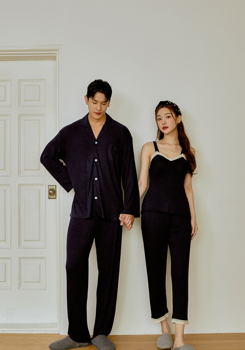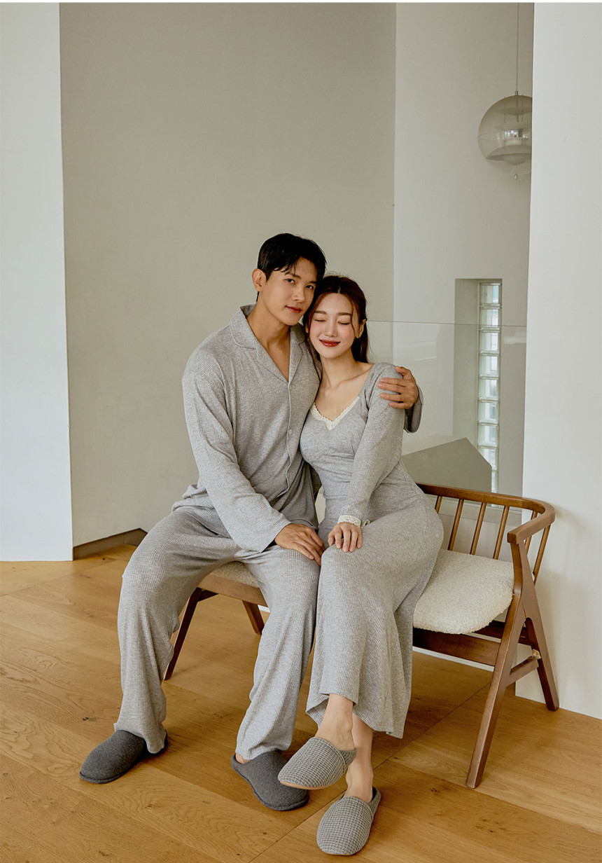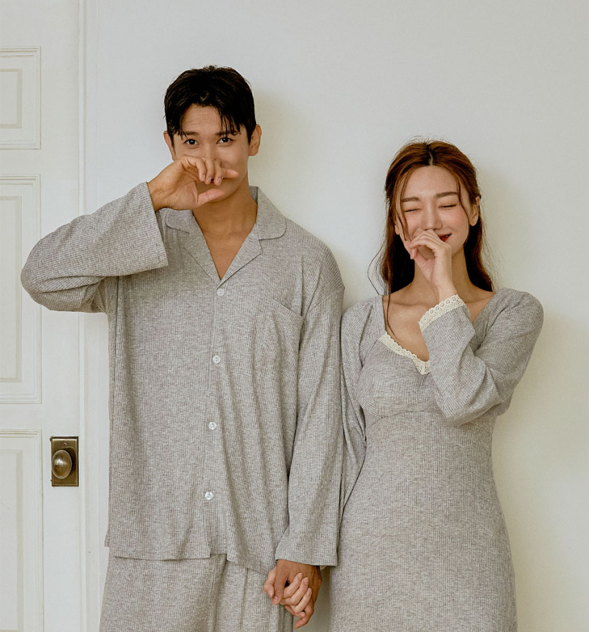 여성 남성 커플 폴리스판 원피스 투피스 수면 잠옷