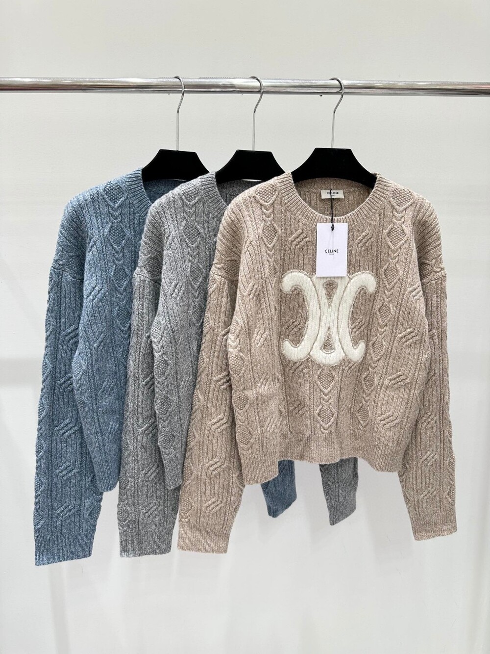 입체적인 트리옹프 로고와 패턴이 귀여운 셀리 숏 니트 입니다 💕