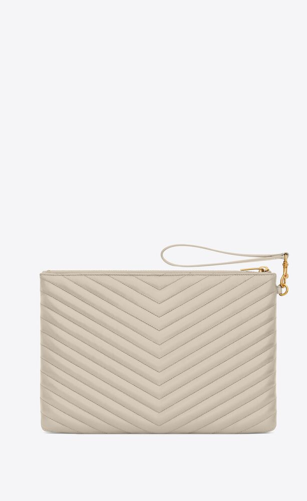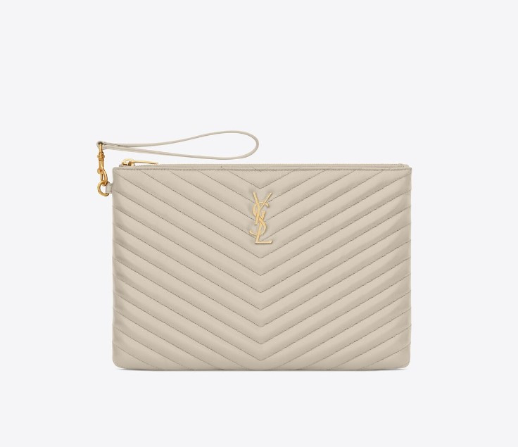 Tablethuelle mit Reissverschluss und YSL-Initialen aus Metall sowie einem abnehmbaren Griff.