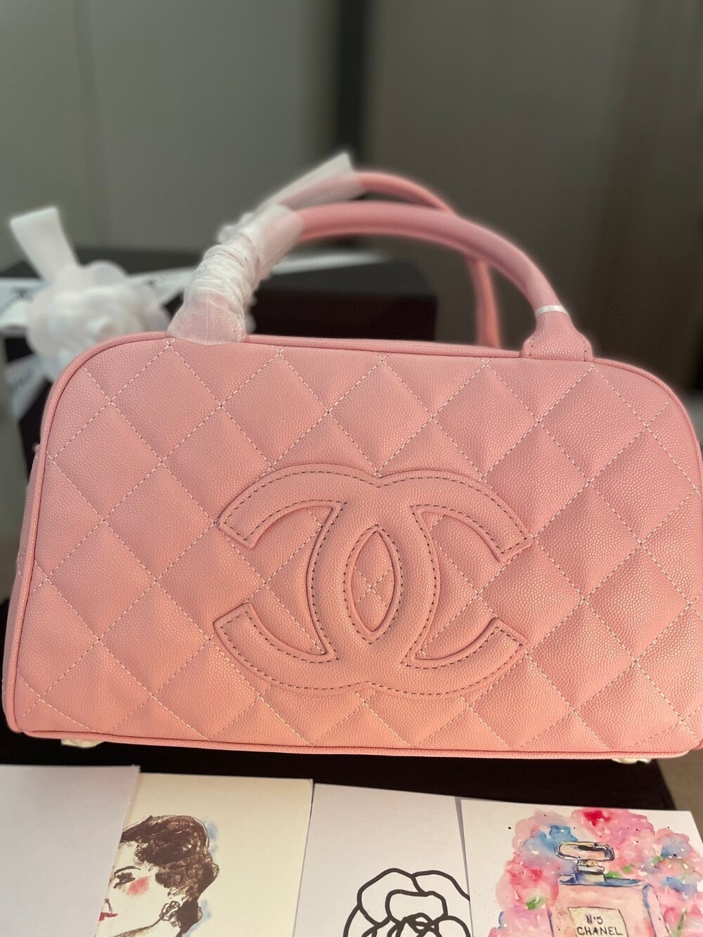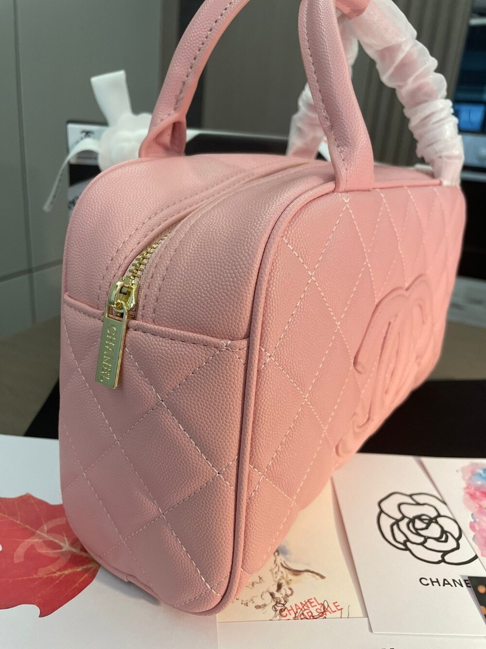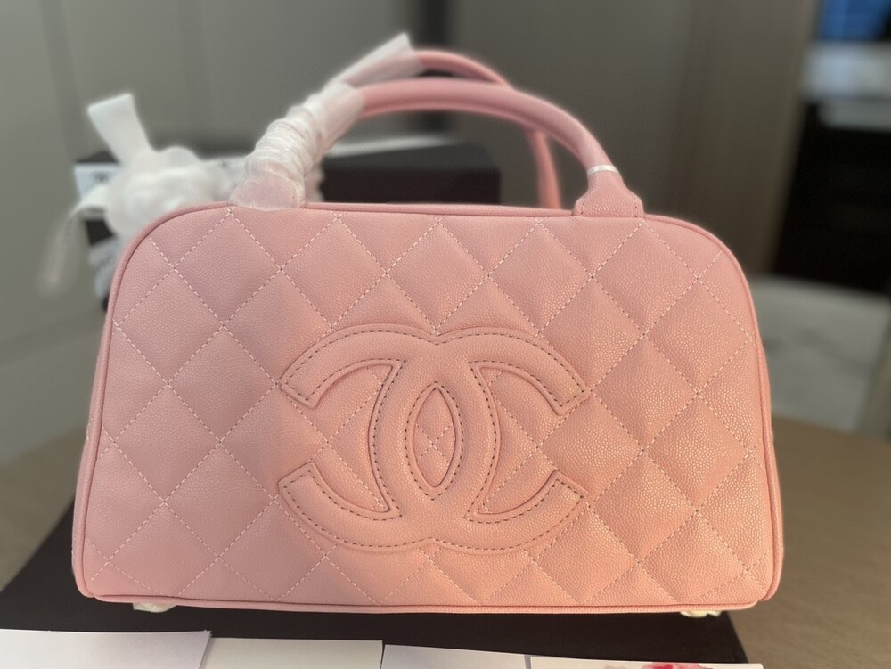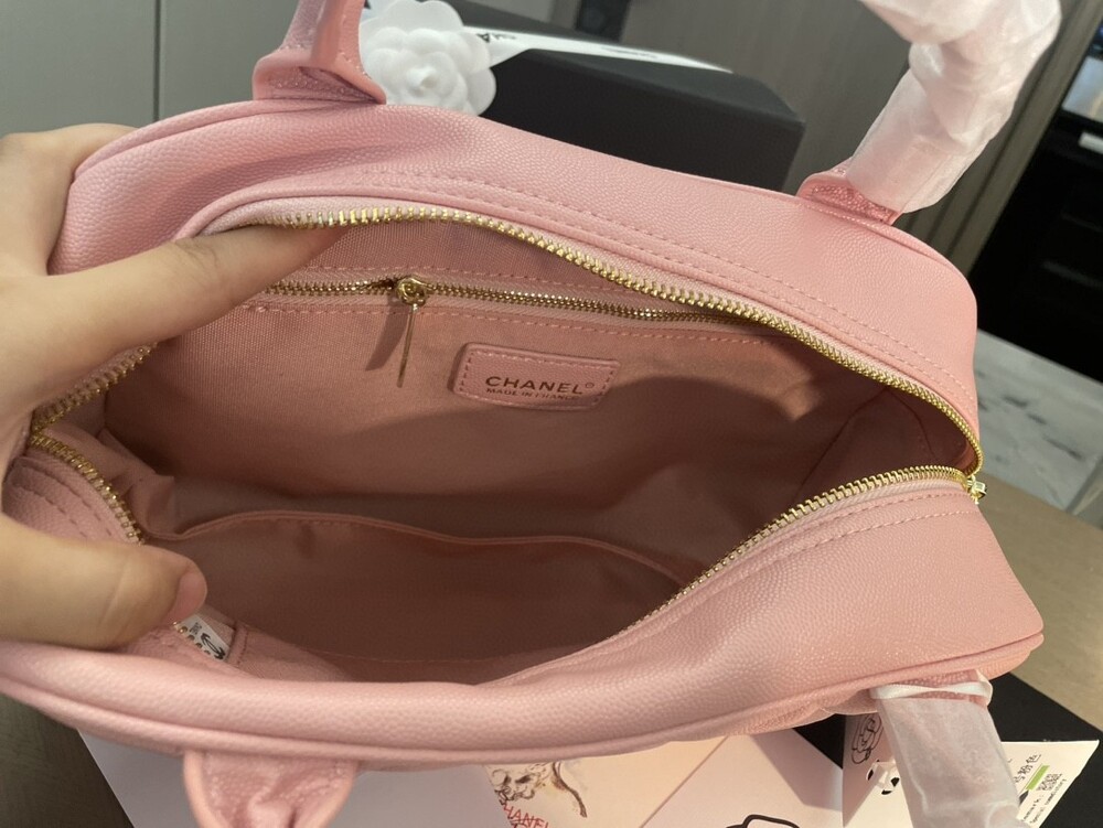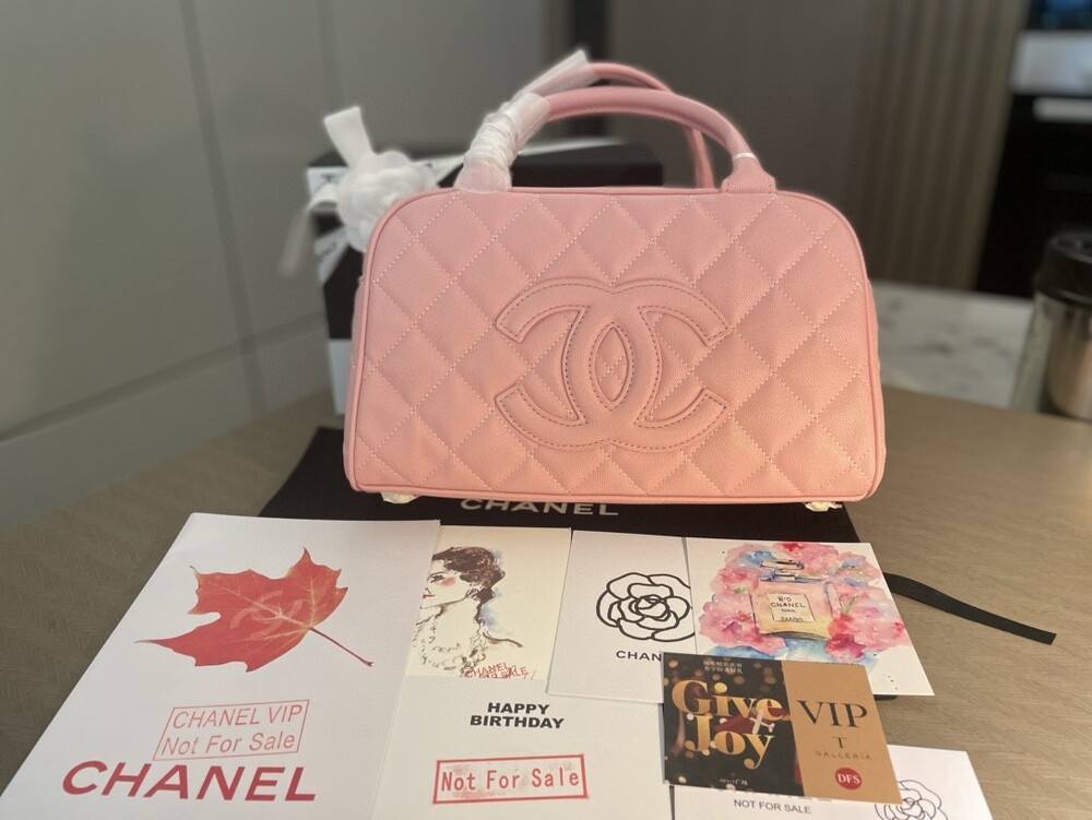 Cowhide Chanel New Style Bowling Bag Caviar Cowhide Pcmortable Non-Crossable Size 25/14/9