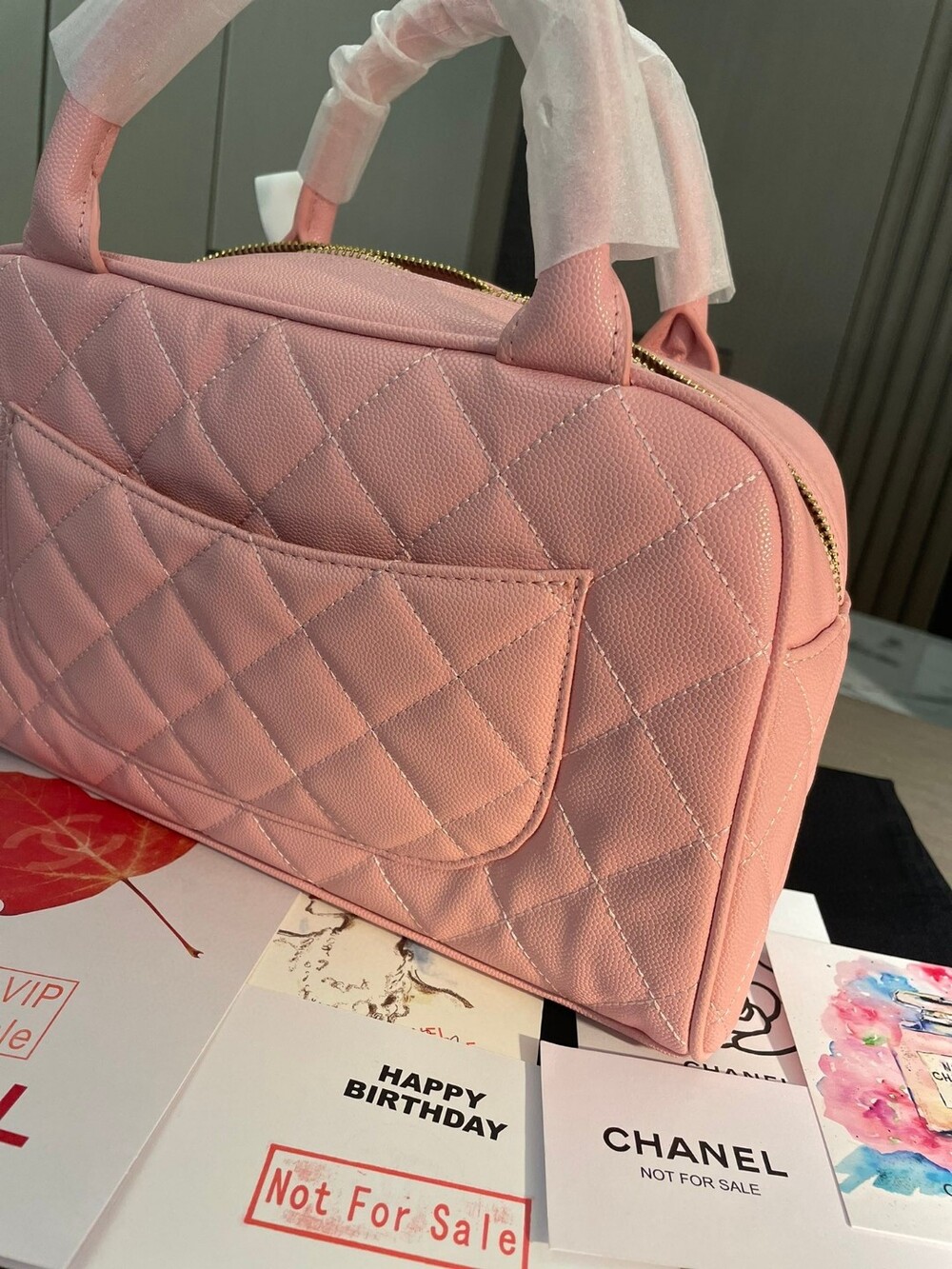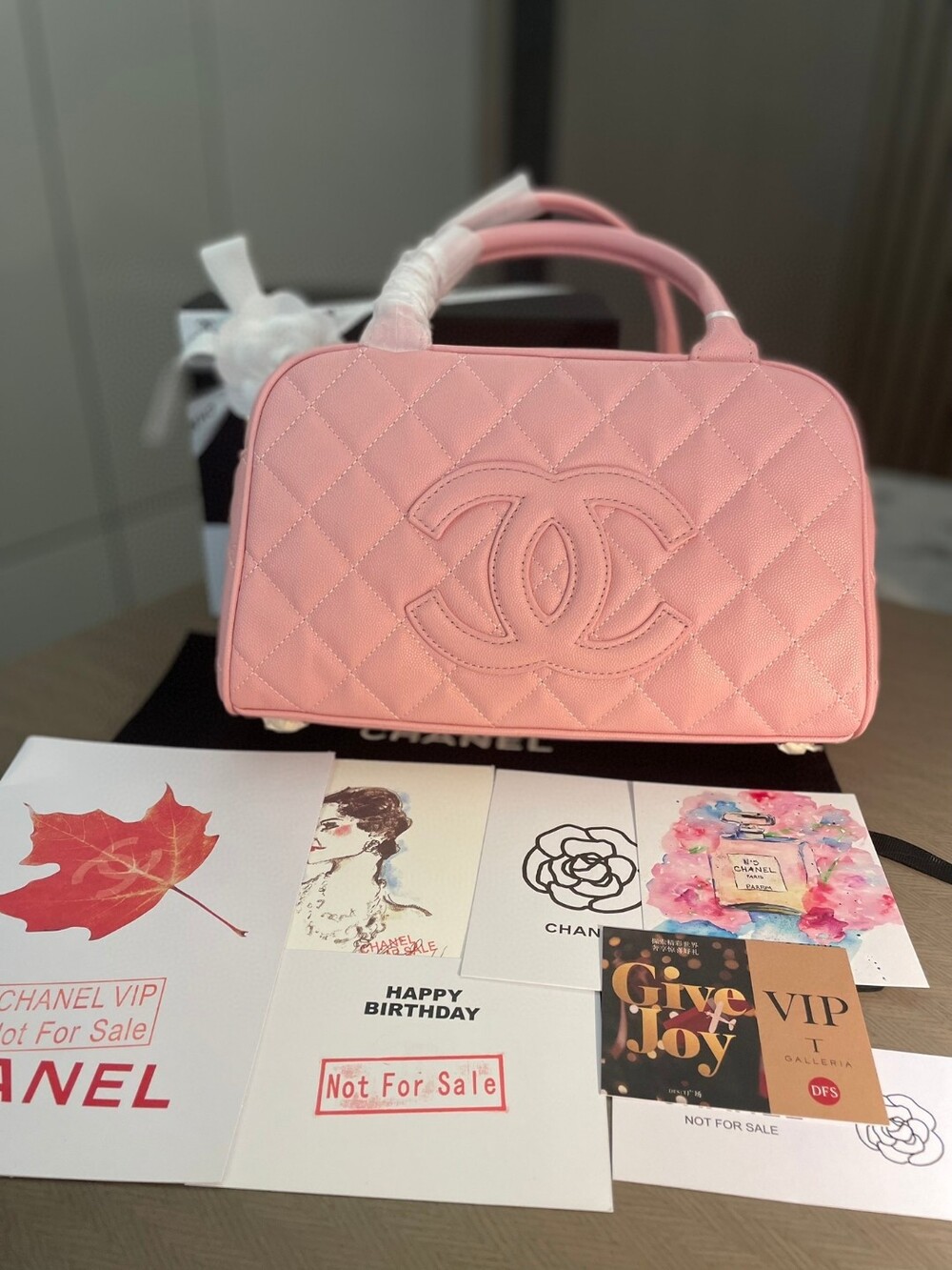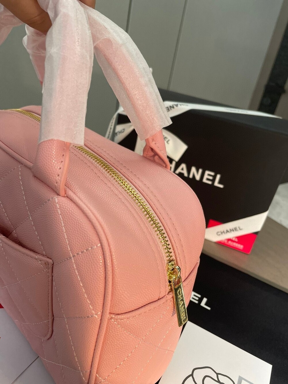 Cowhide Chanel New Style Bowling Bag Caviar Cowhide Pcmortable Non-Crossable Size 25/14/9