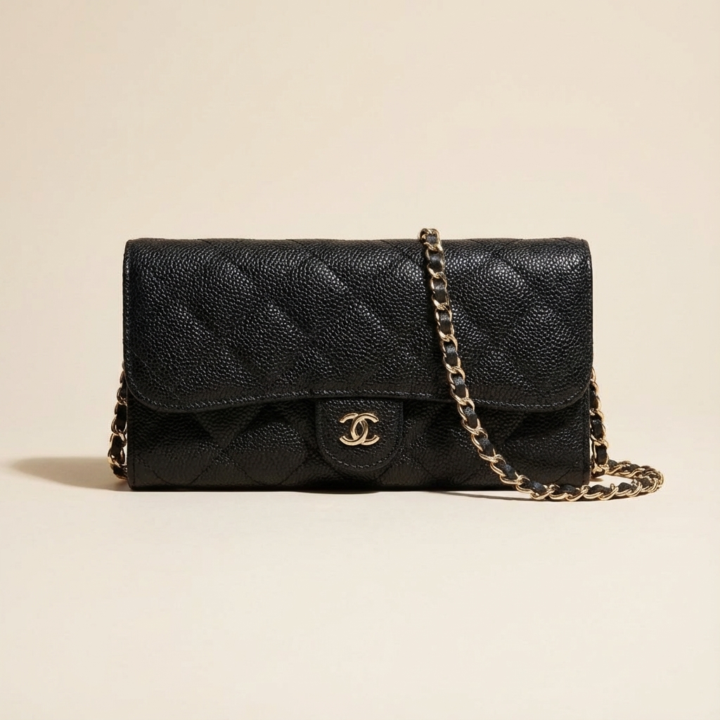 The timeless elegance of Chanel in a compact wallet-on-chain design.