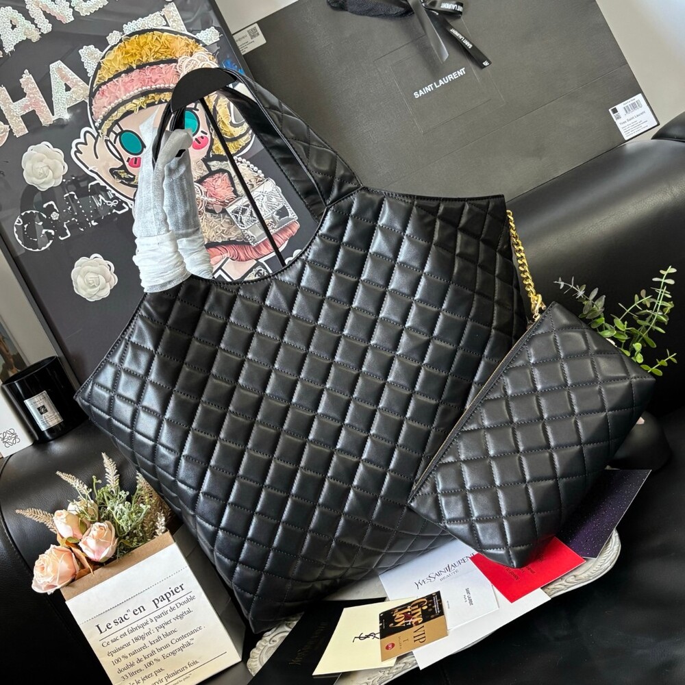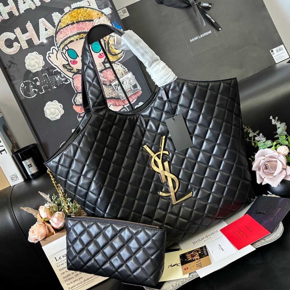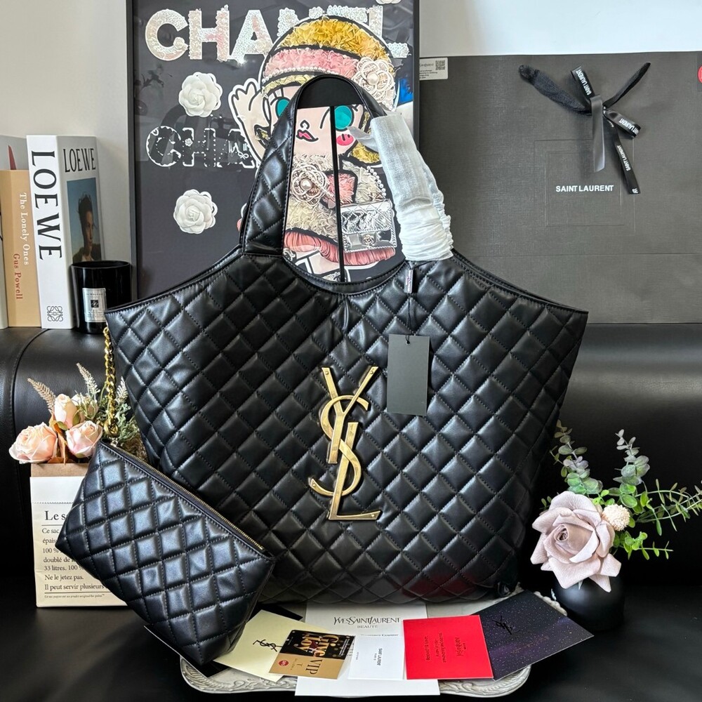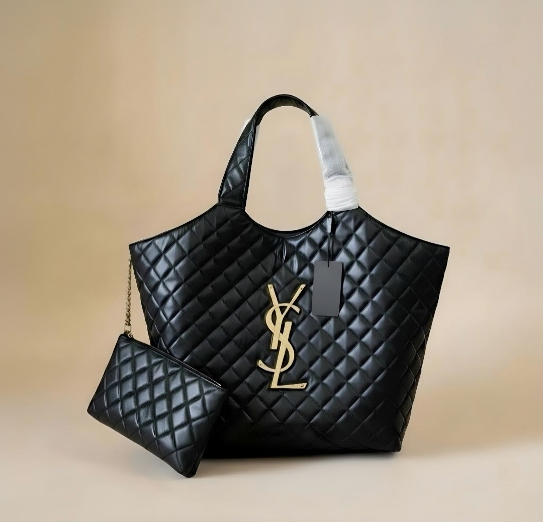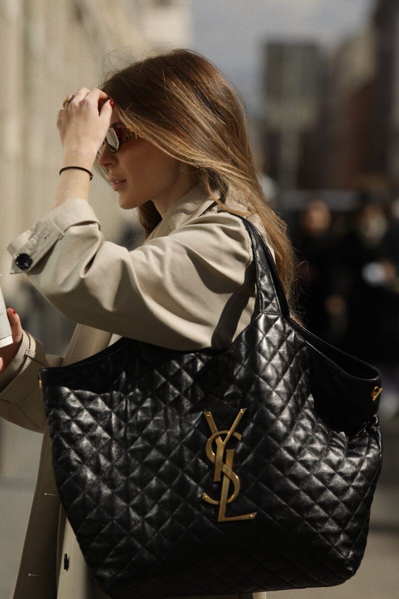 The signature YSL monogram adds a bold yet elegant focal point,