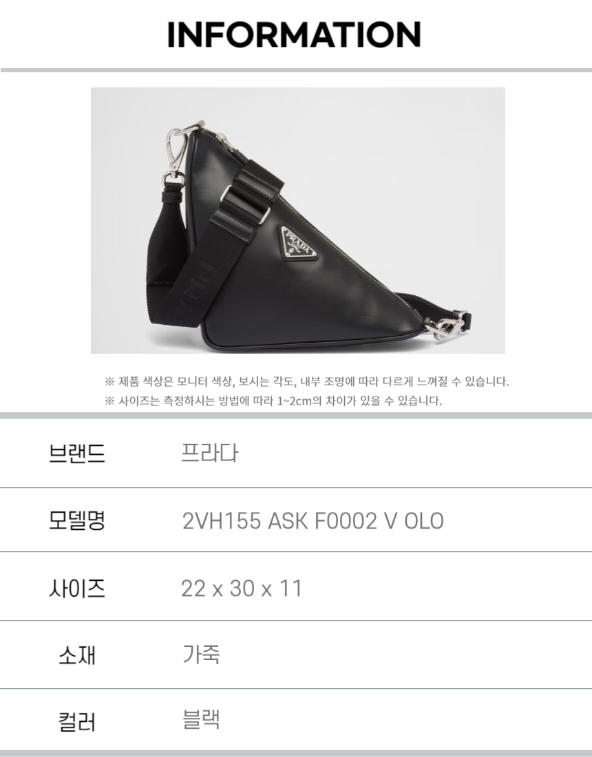[국내재고보유] 프라다 트라이앵글 레더백 2VH155 ASK F0002 V OLO