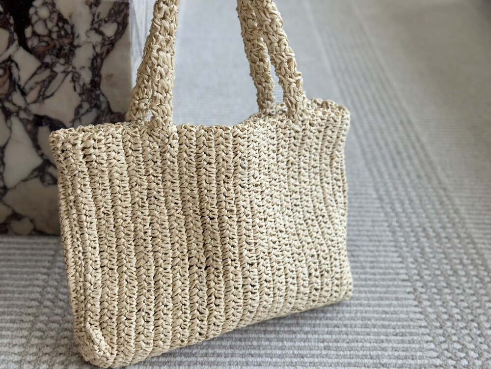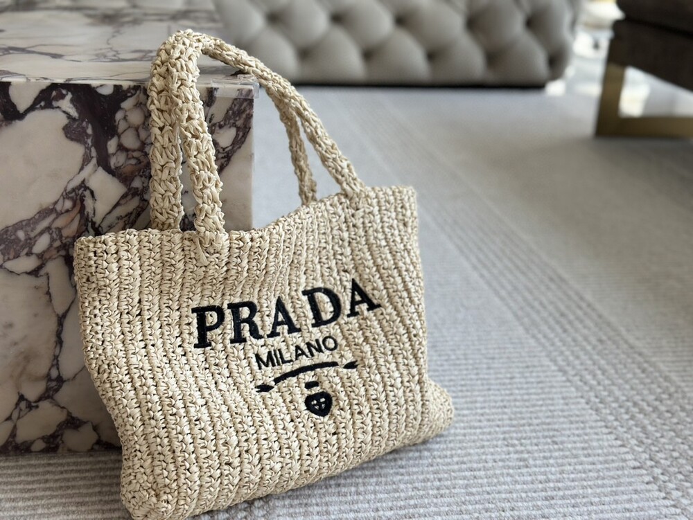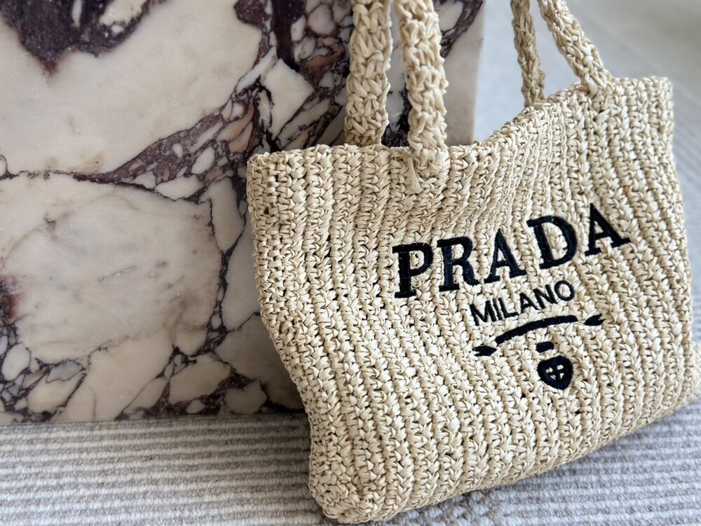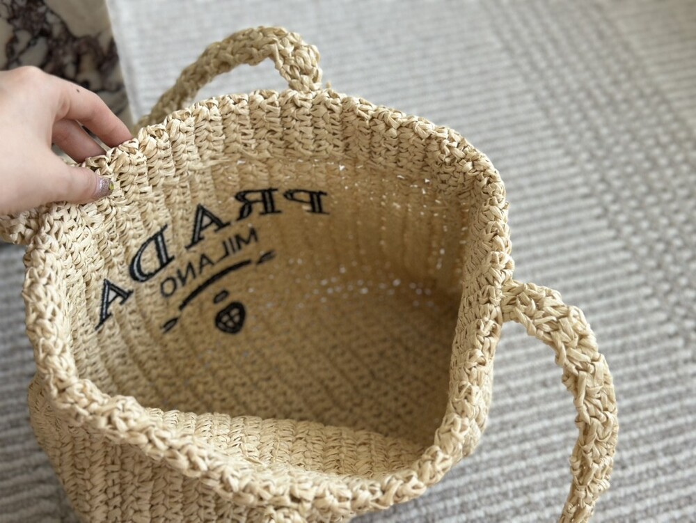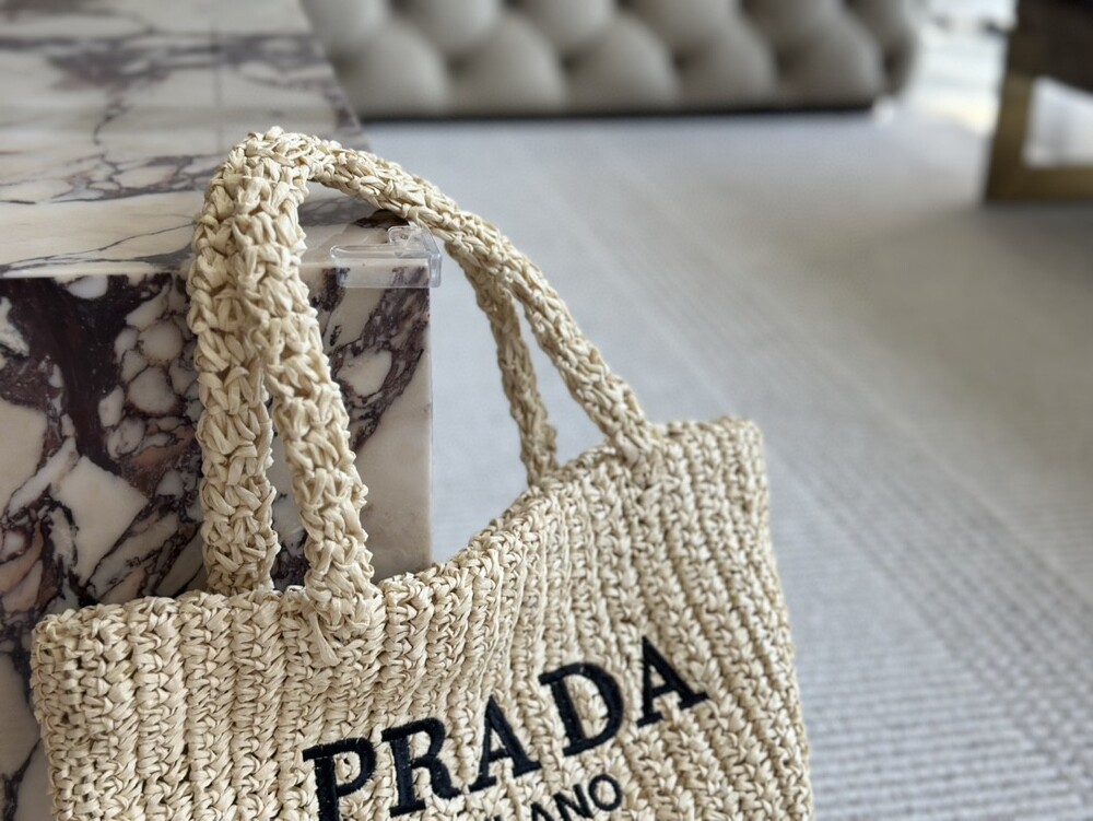 Prada's beautiful straw braid It's summer with Prada's sun grass. Summer solstice soon, to recommend this Prada sunshine straw braid Weaving and leather, refreshing and artistic, so you can also be sweet.The design is also very practical and has a large capacity.Size 30cm