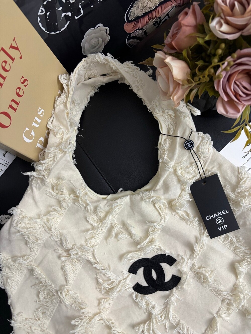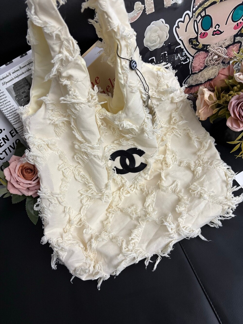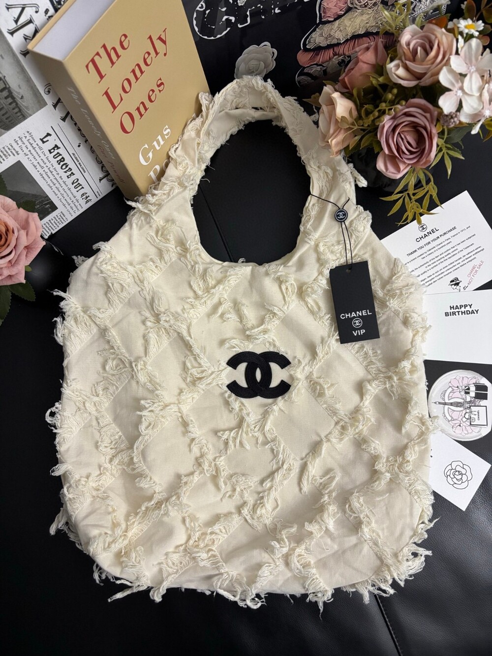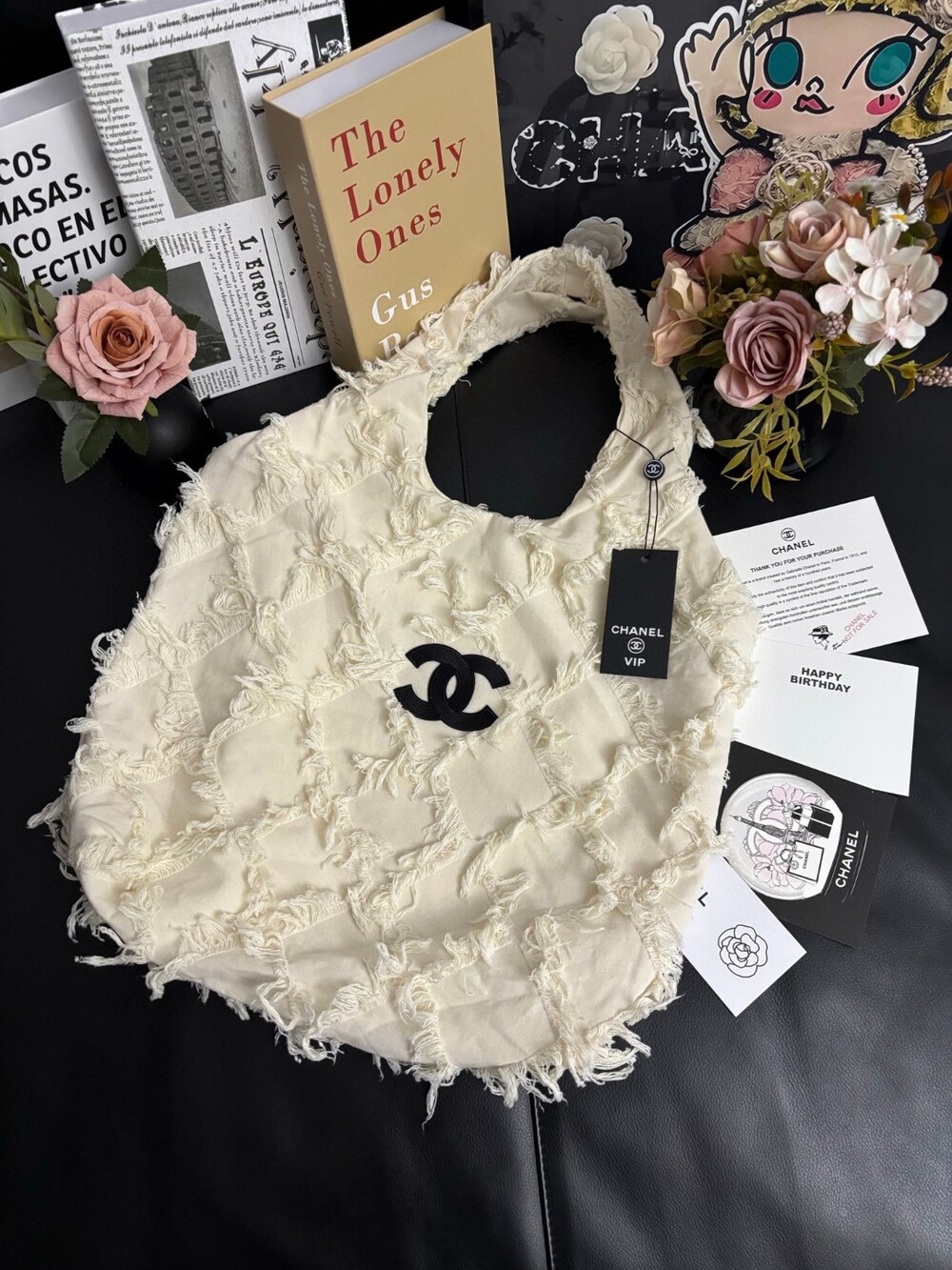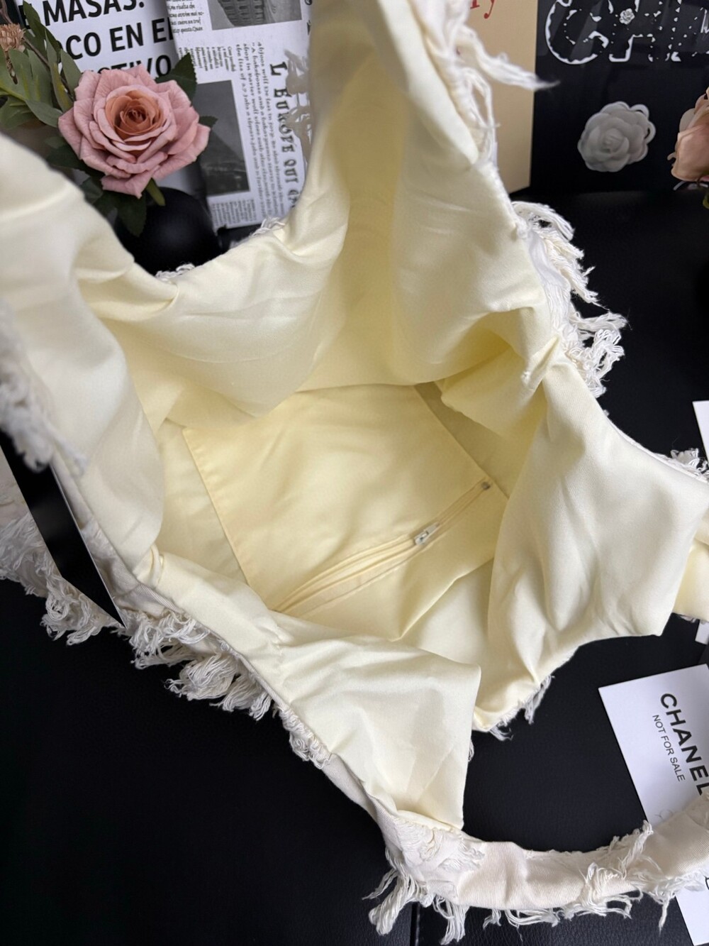 [Chanel Vip gift] Chanel Fringe Canvas Tote Bag – Ivory (VIP Gift Edition)