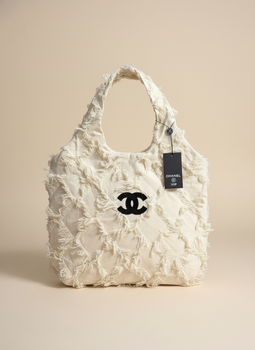 [Chanel Vip gift] Chanel Fringe Canvas Tote Bag – Ivory (VIP Gift Edition)