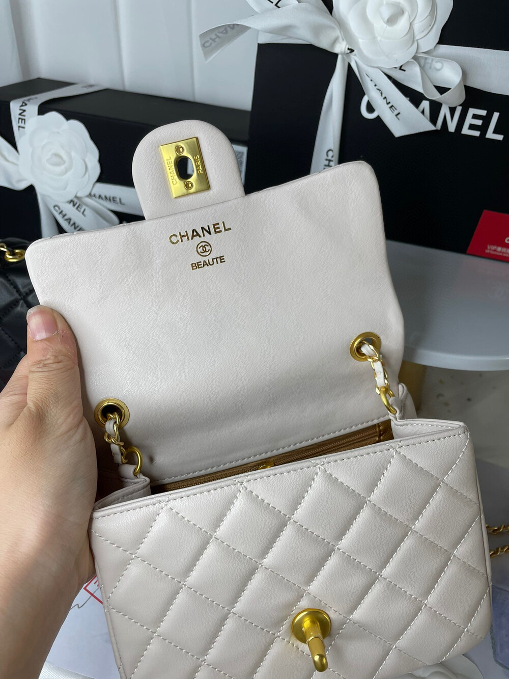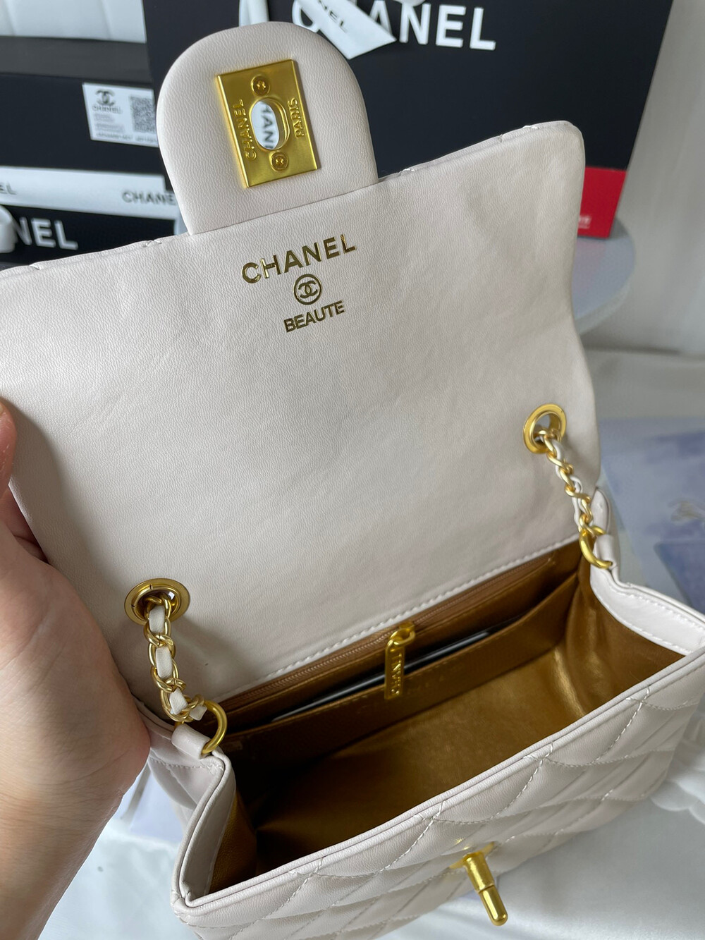 Chanel beauty gift lambskin, gold plated