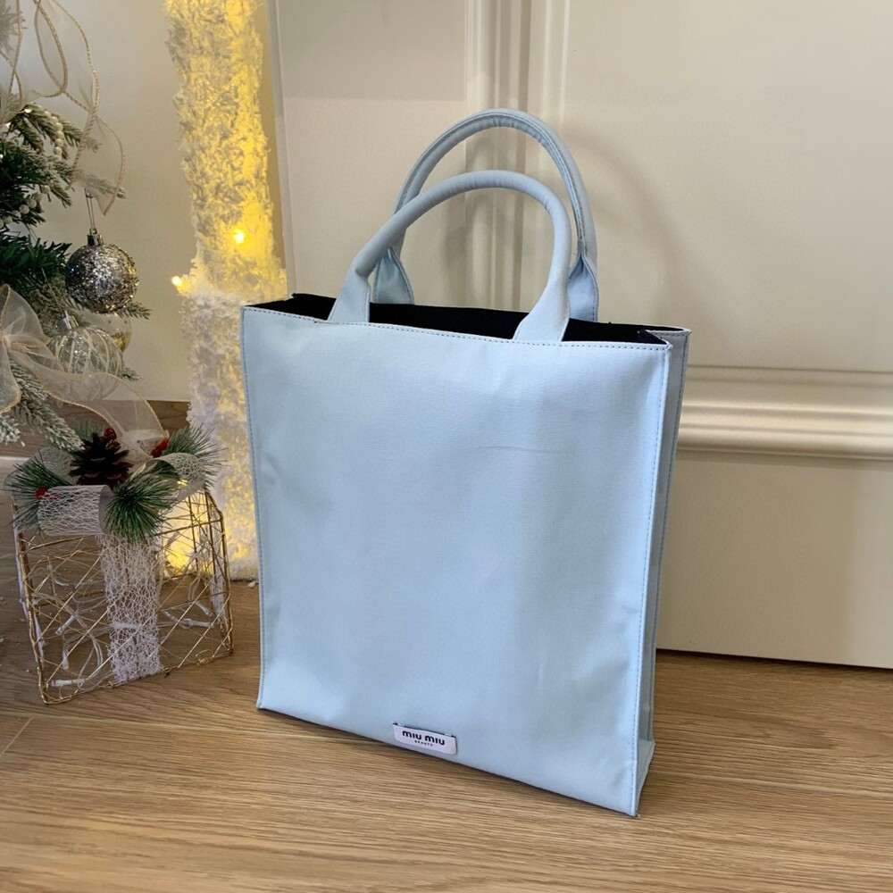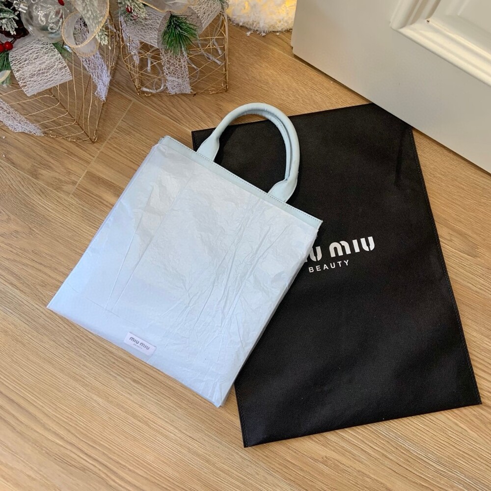 This Azzurro blue canvas tote bag was released as a Miu Miu fragrance gift,