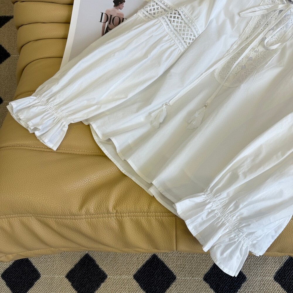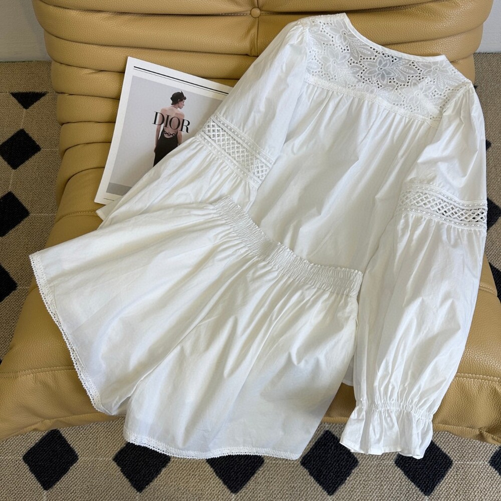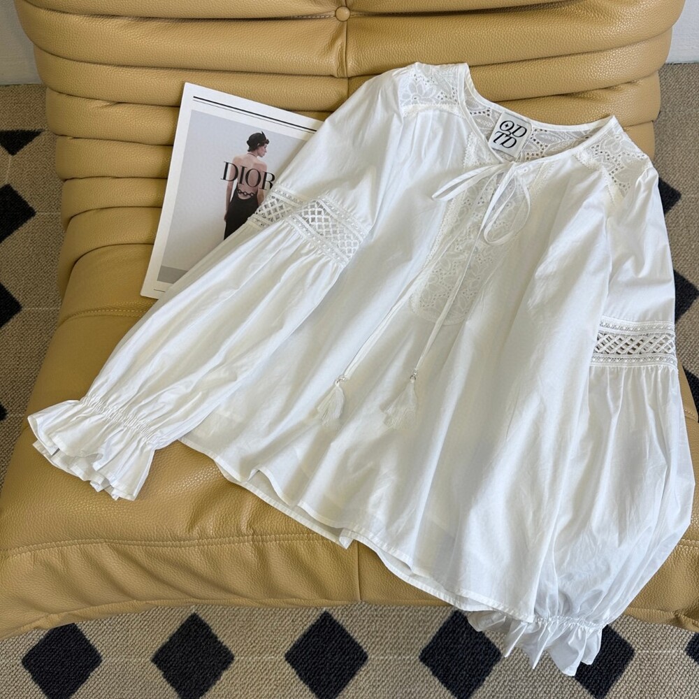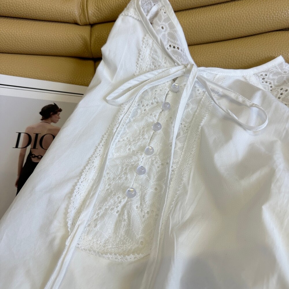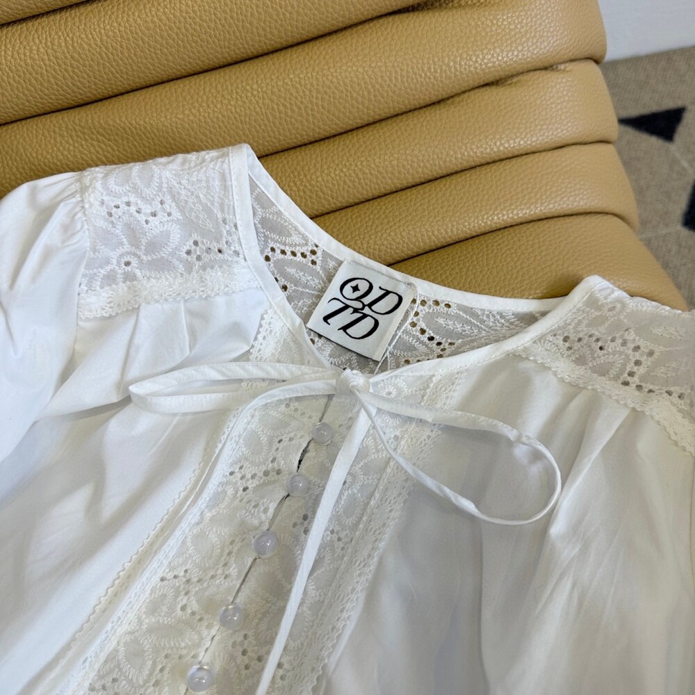 I. CD 크림 레이스 크롭 블라우스