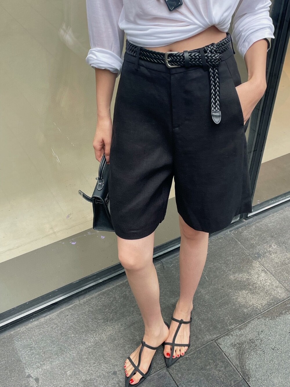 c. 셀리 벨트 하이웨스트 와이드 팬츠