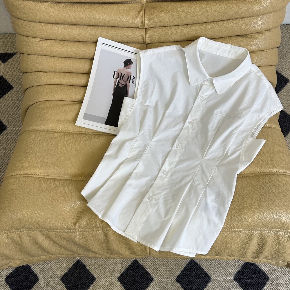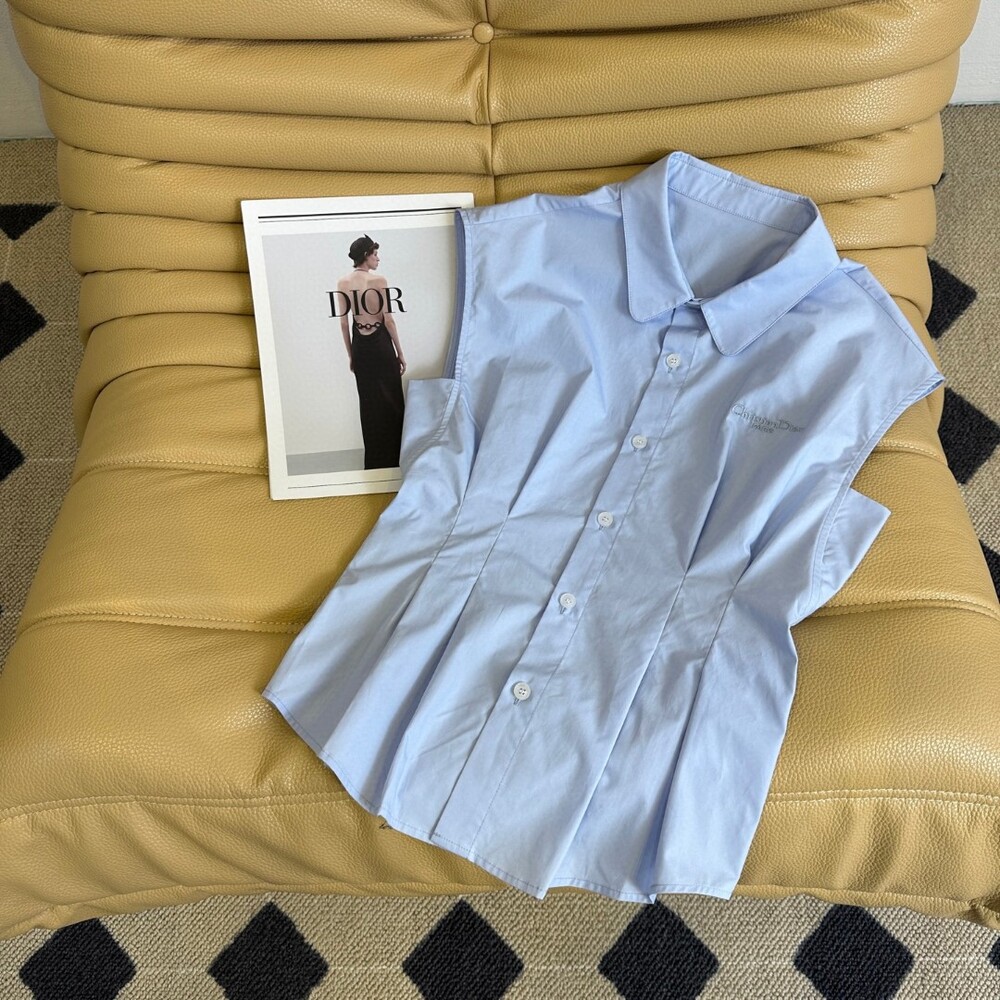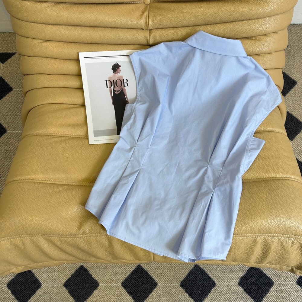 D. CD 레터링 핀턱 민소매 블라우스