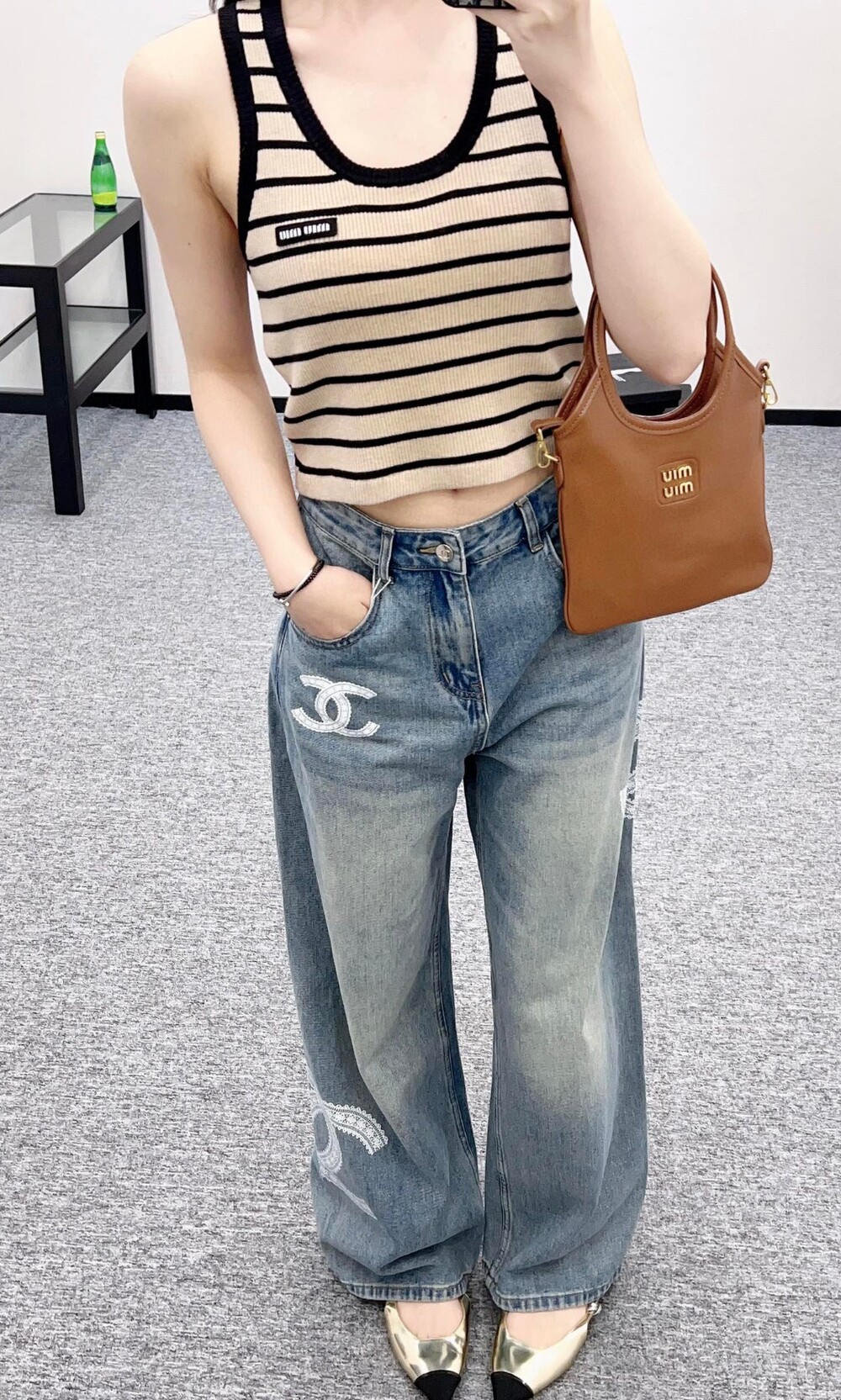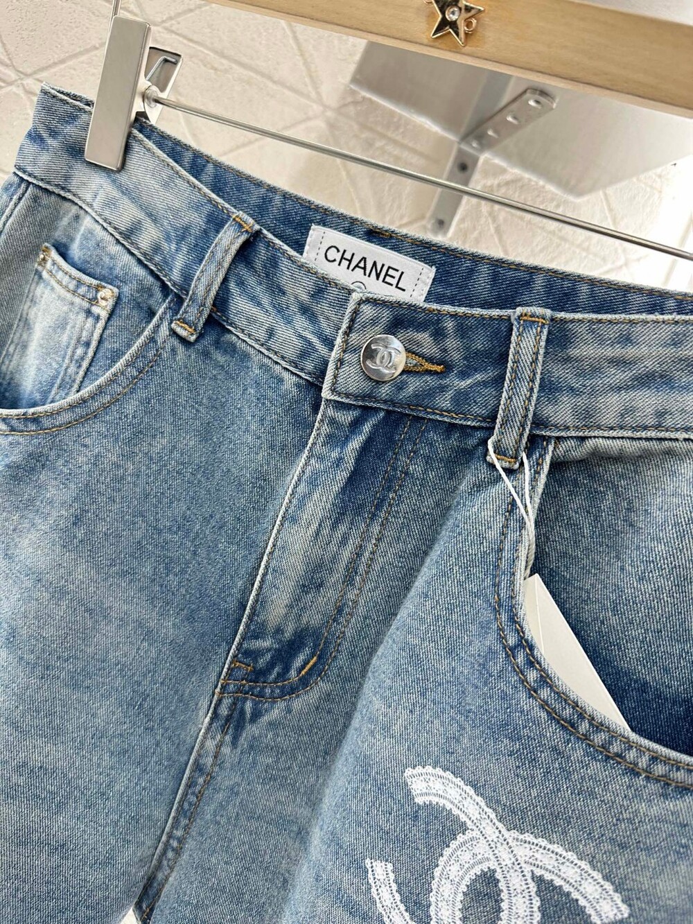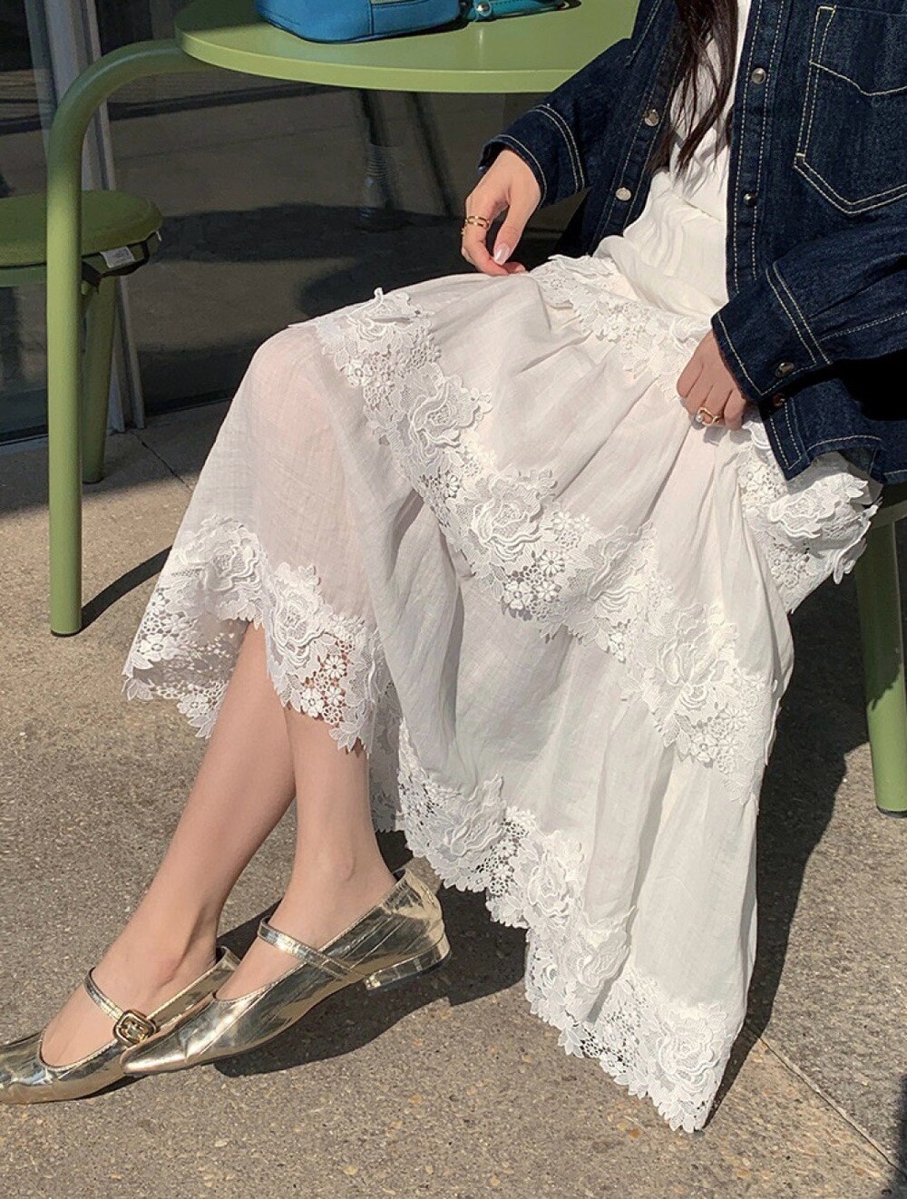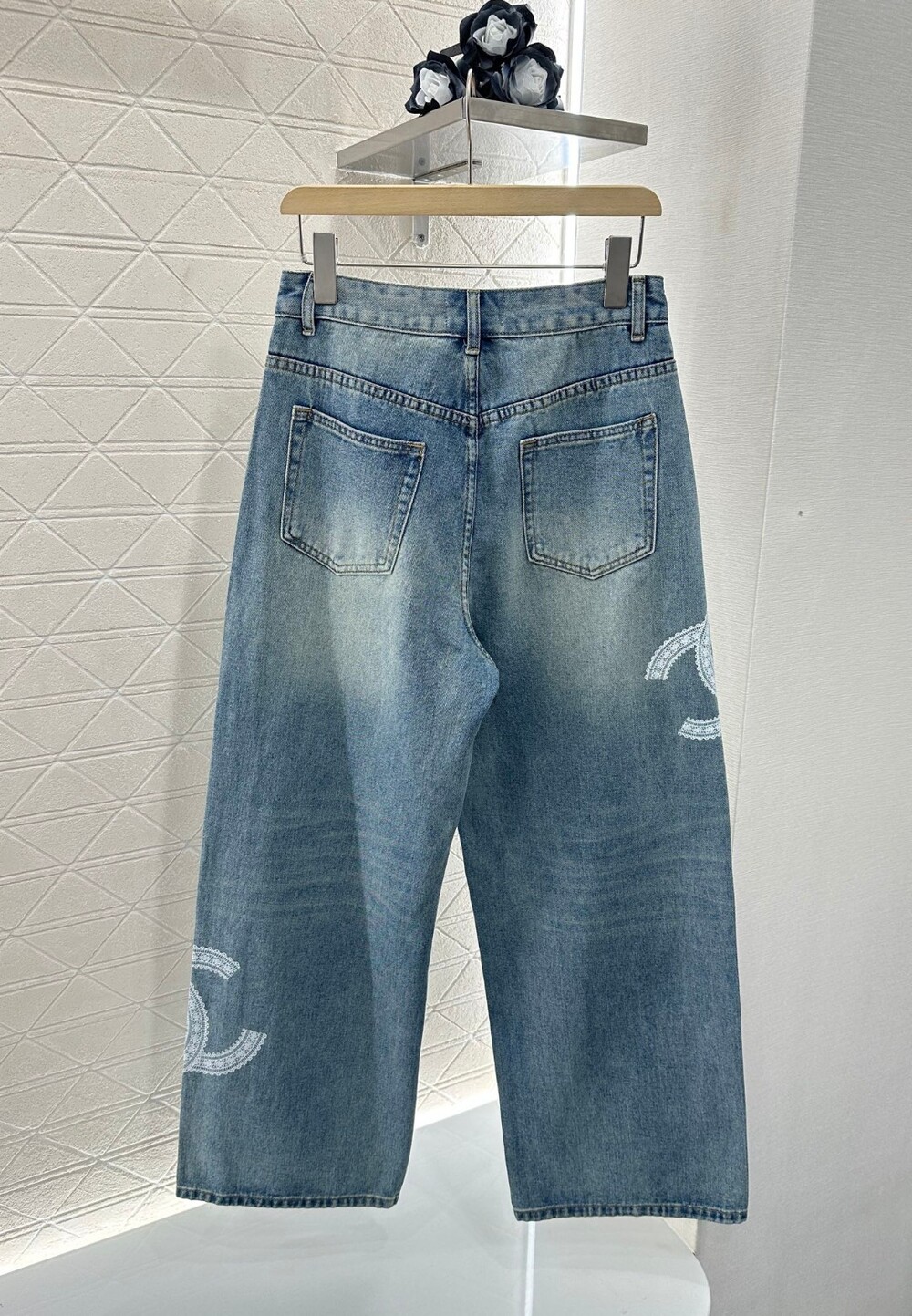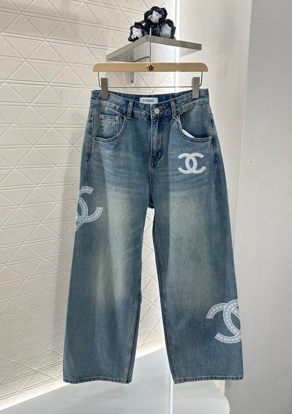 E. CC 레이스 포인트 데님 와이드 팬츠