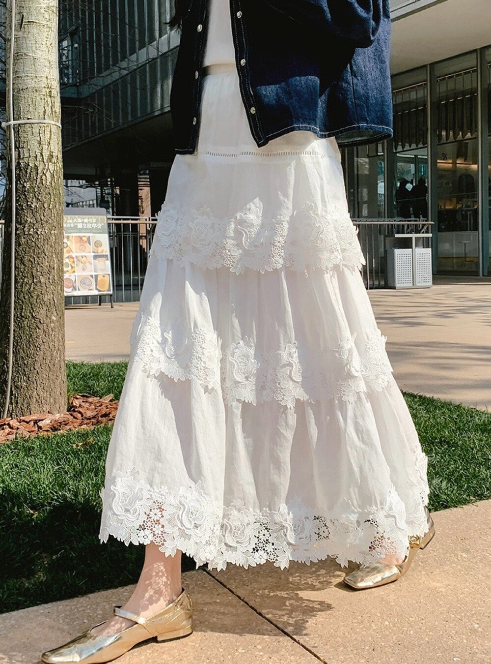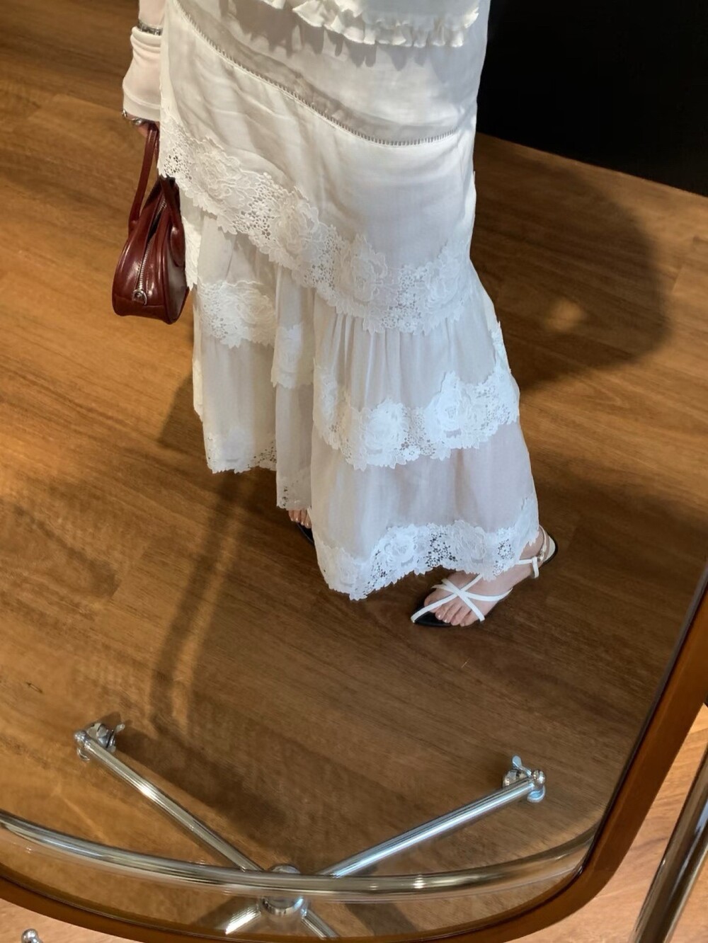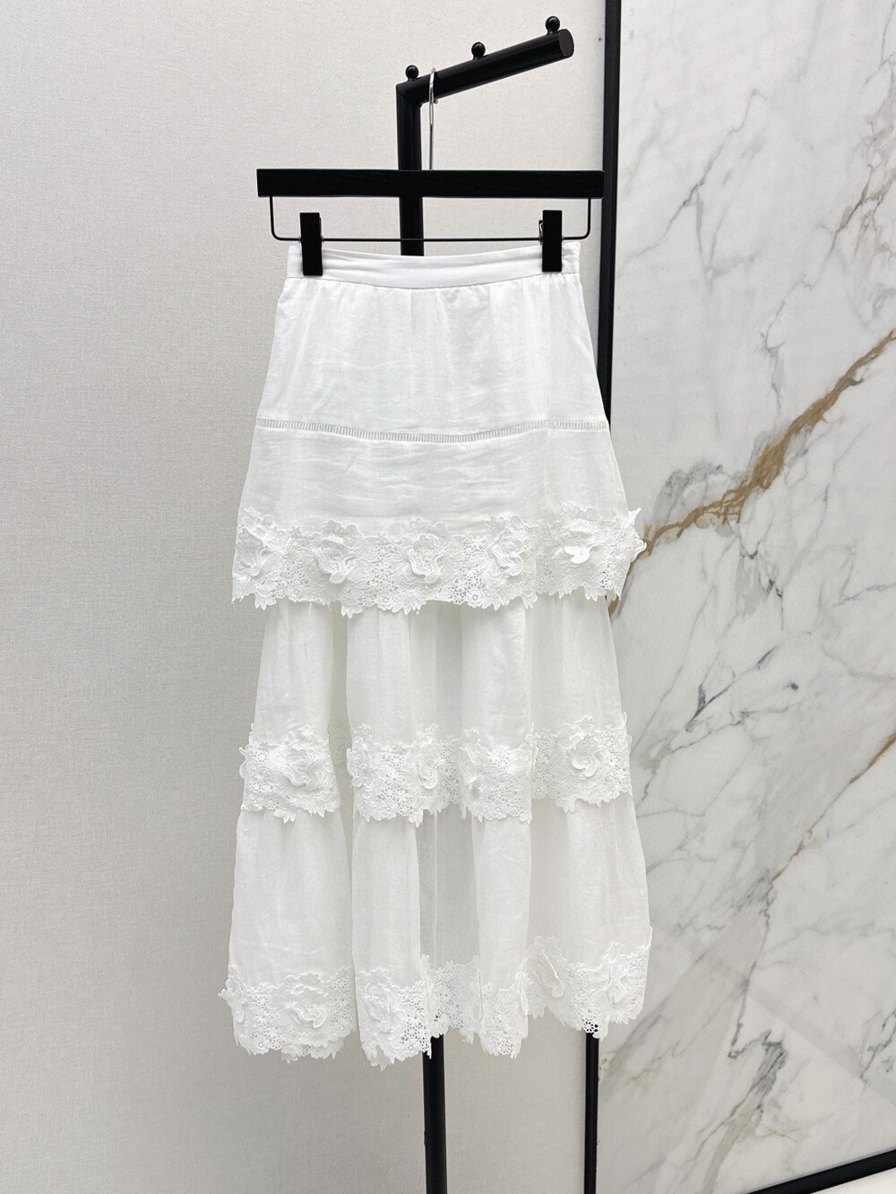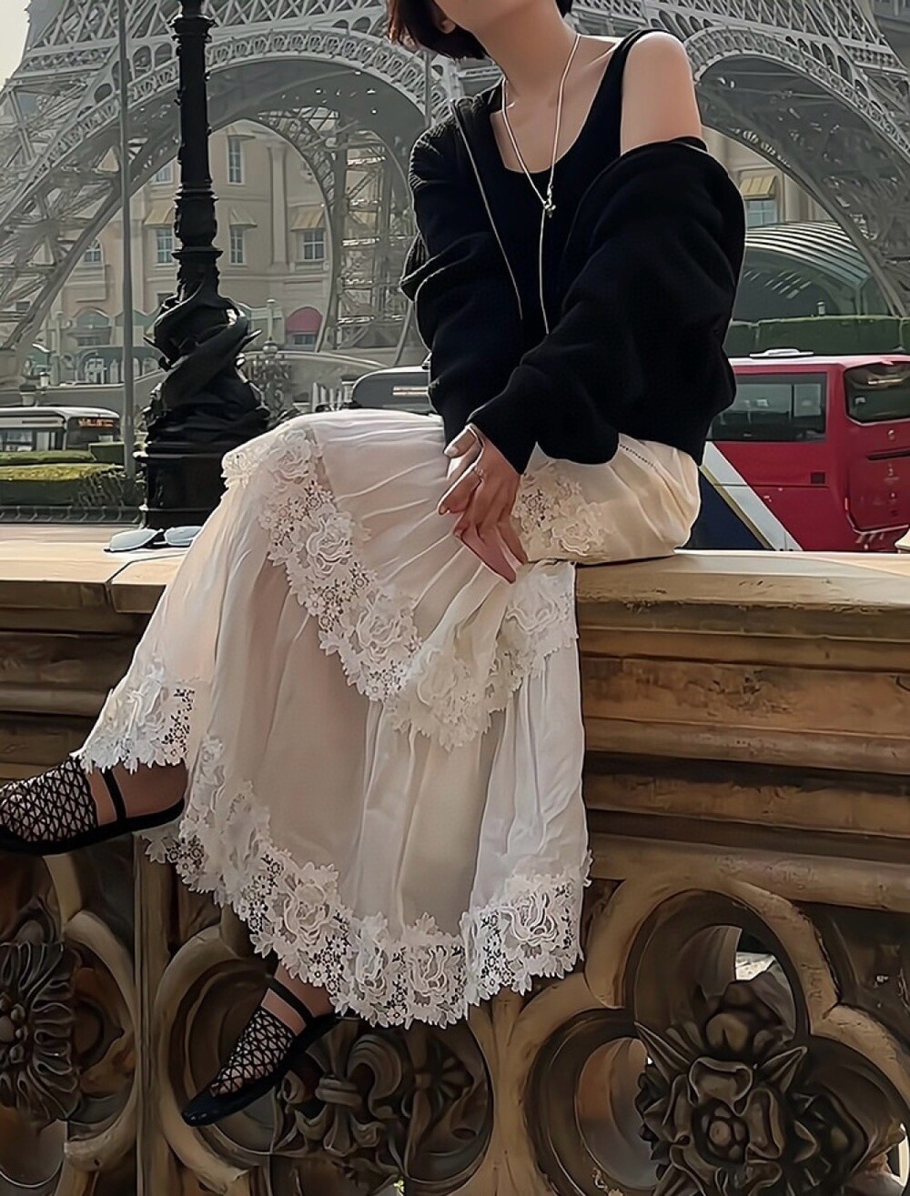 L 로로 화이트 레이스 플레어 스커트