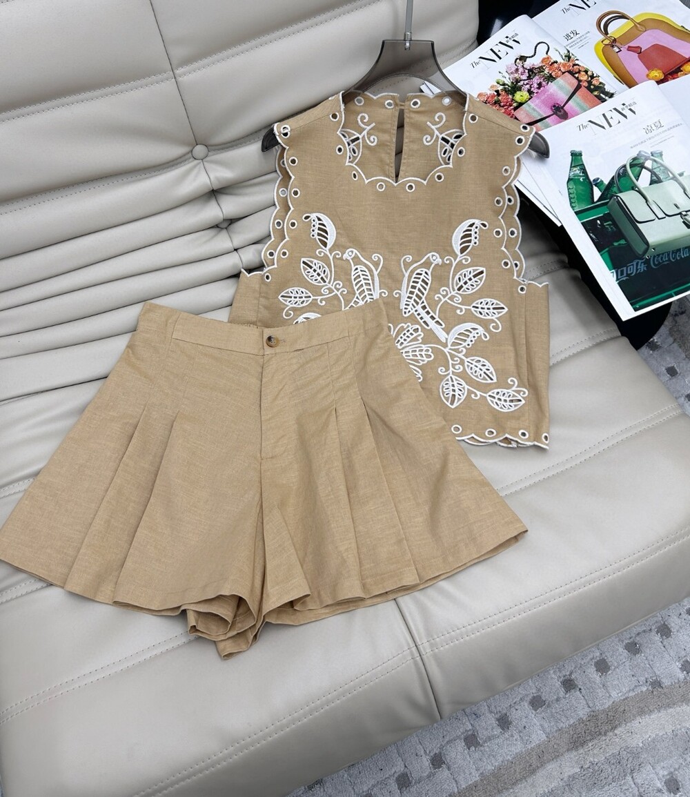 O. 막스 자수 베이지 투피스 셋업
