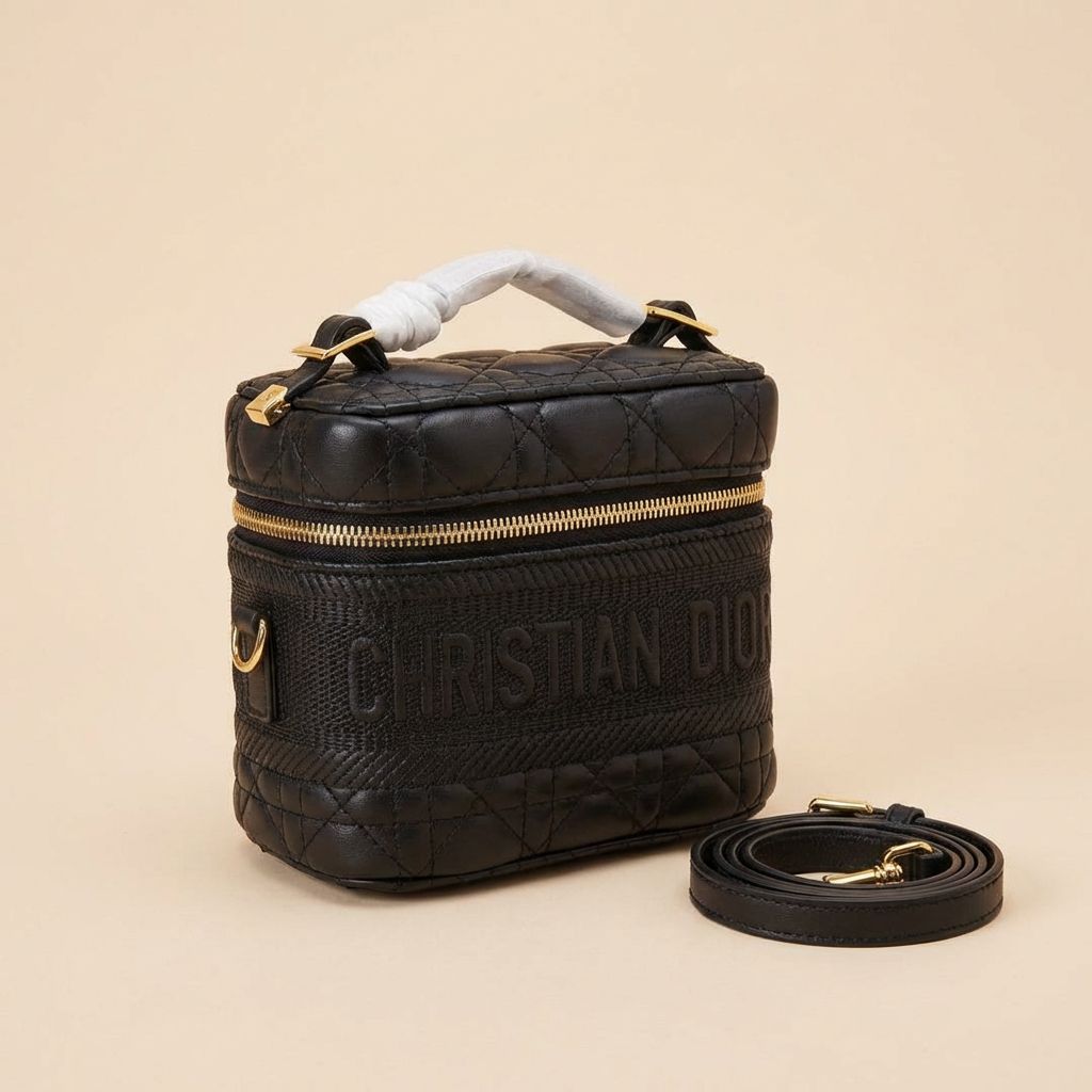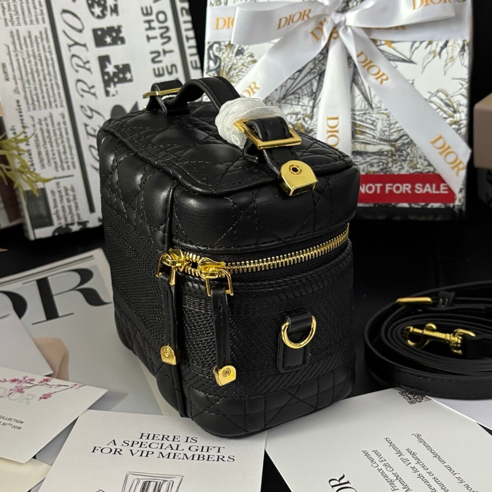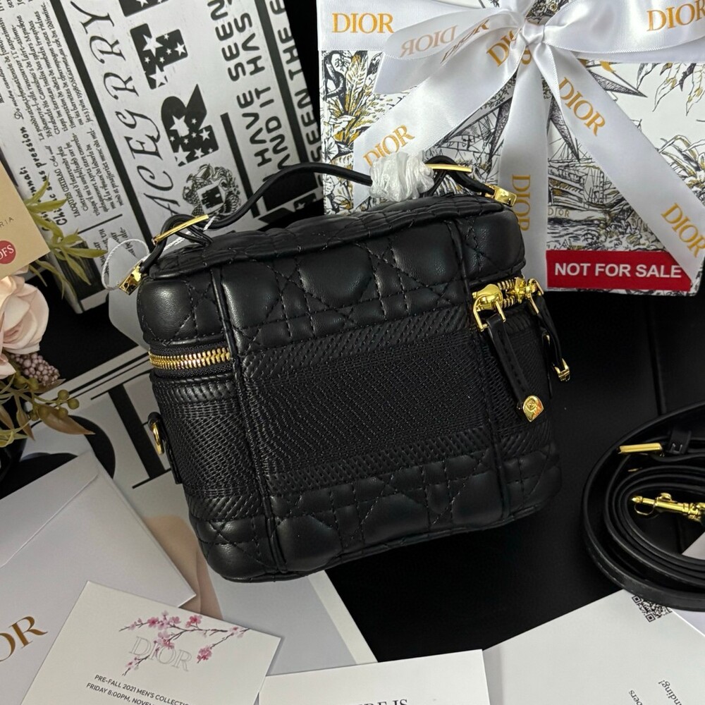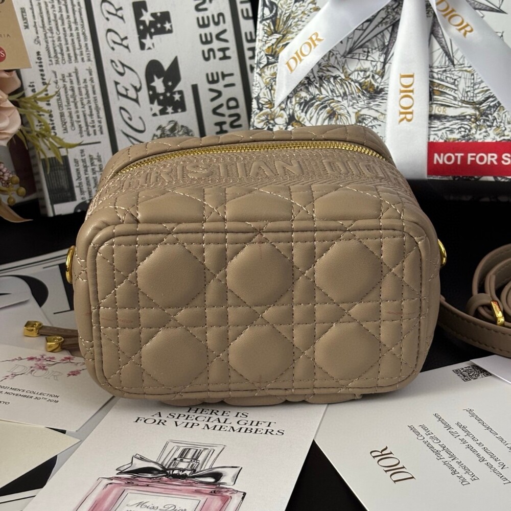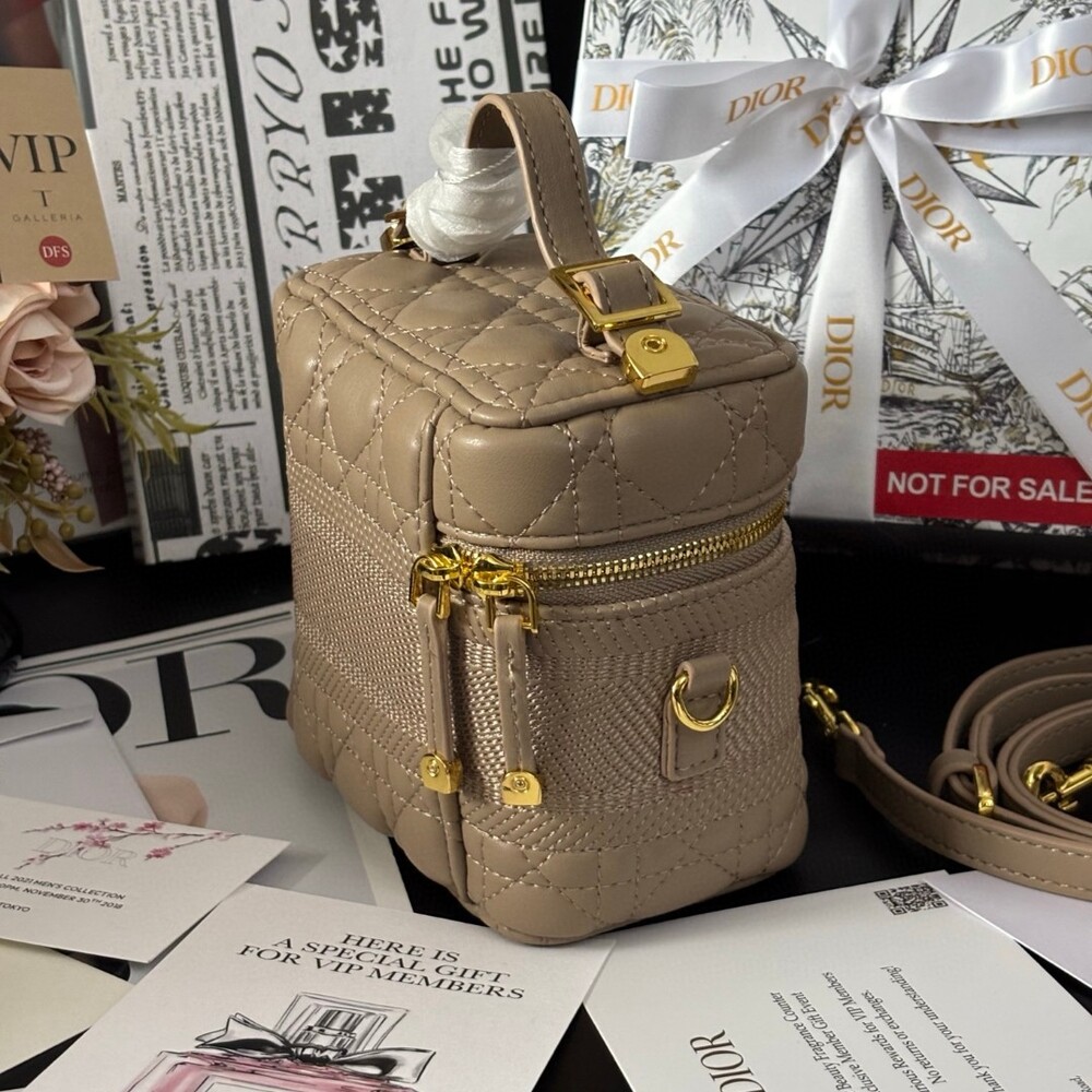 A compact vanity-style bag featuring Dior’s signature cannage quilting.