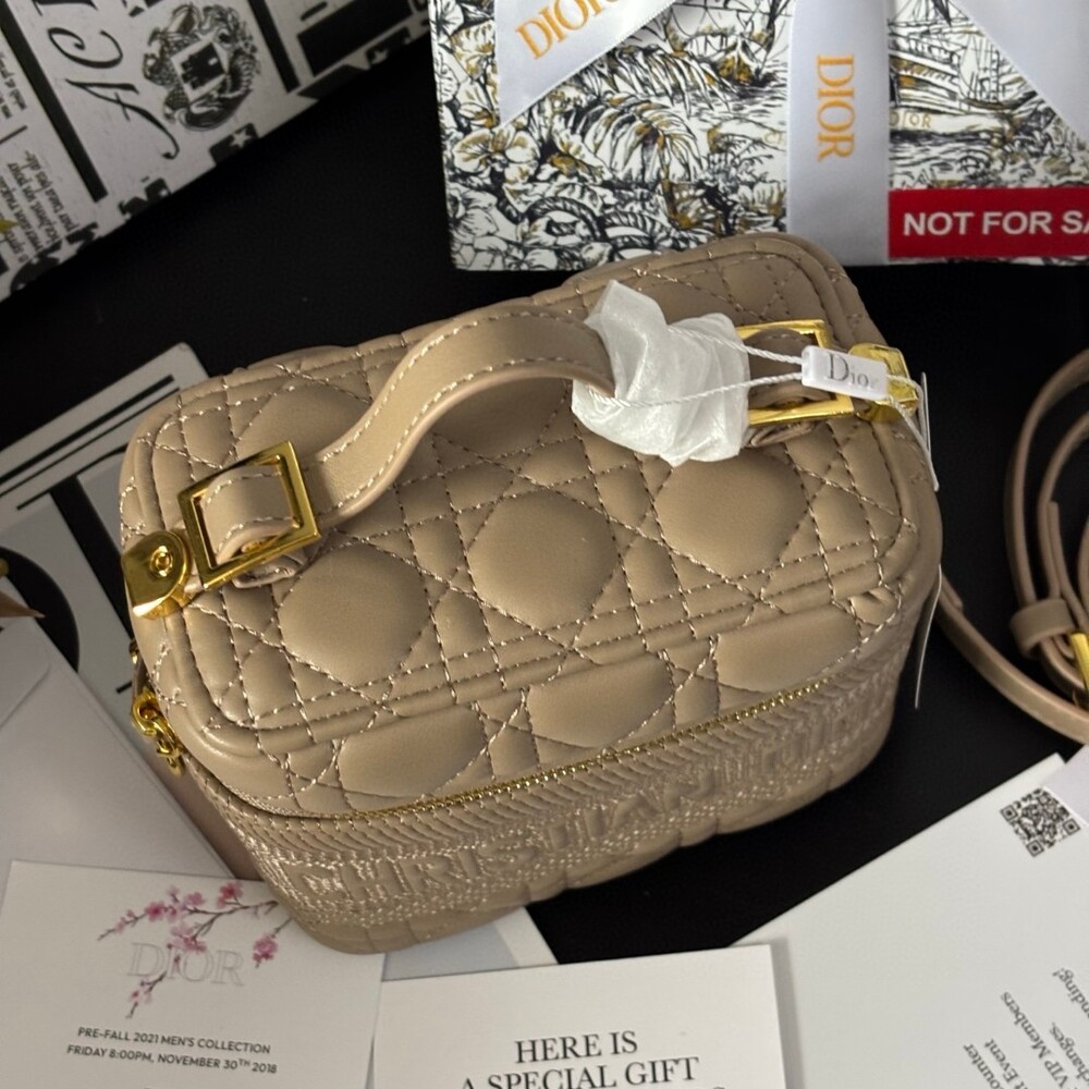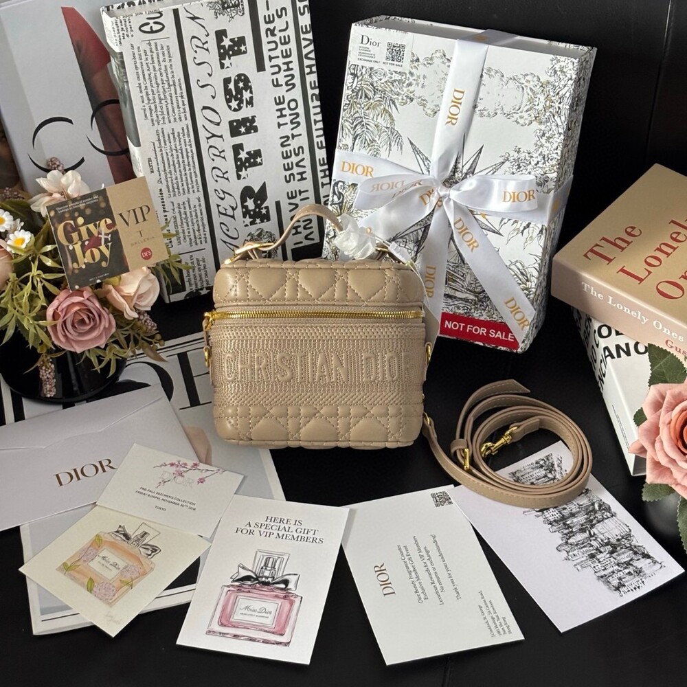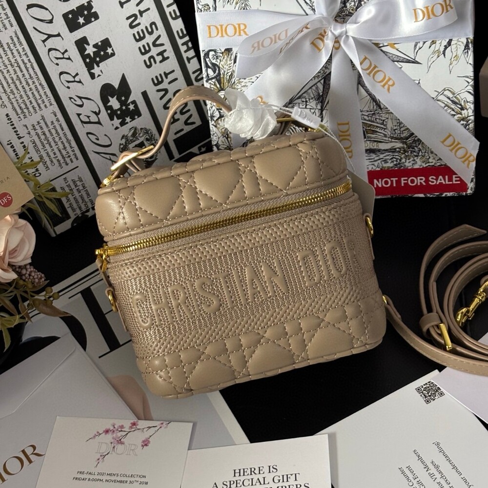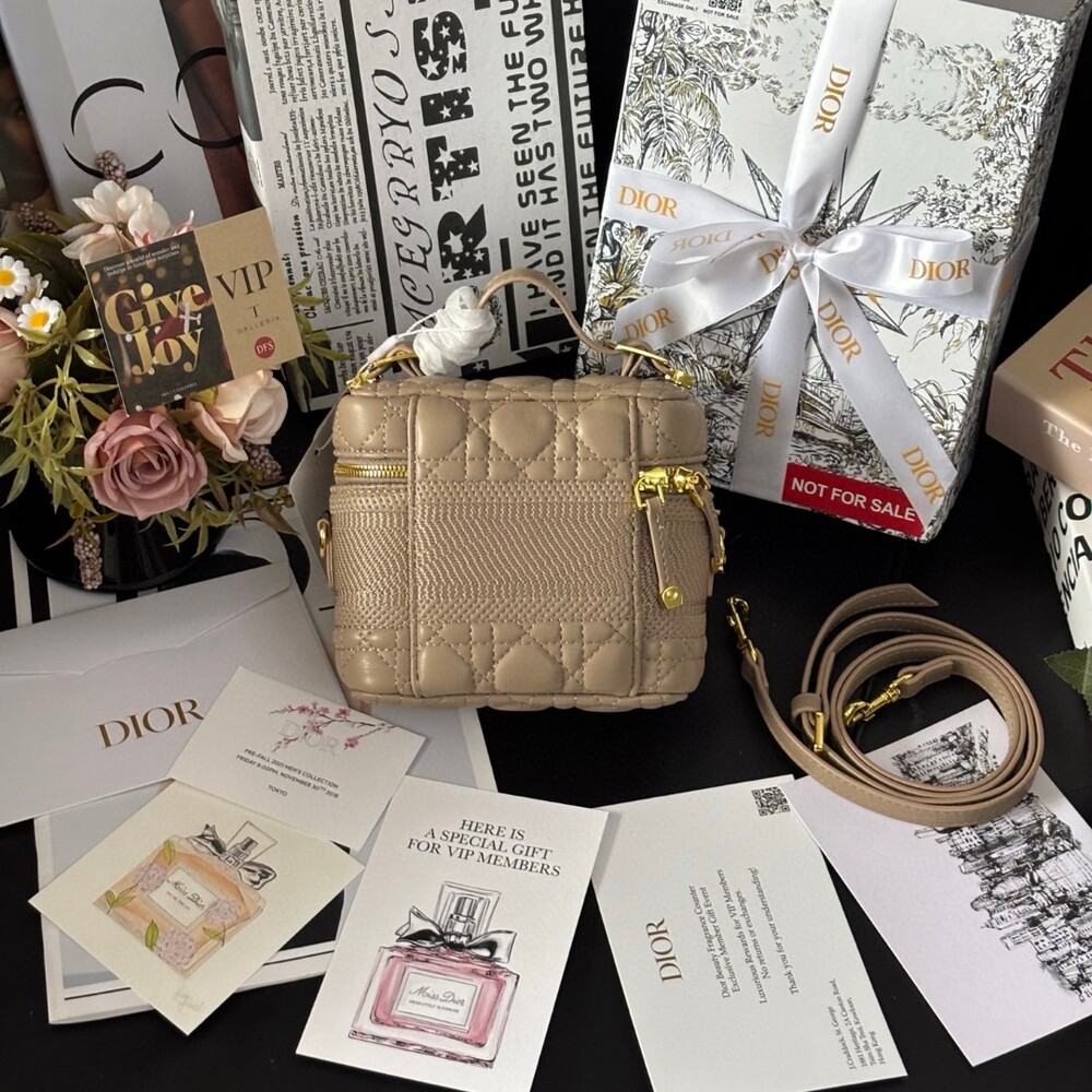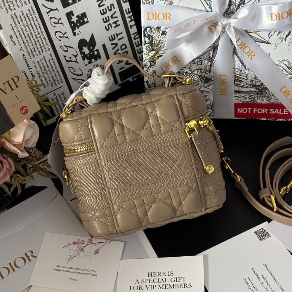 A compact vanity-style bag featuring Dior’s signature cannage quilting.